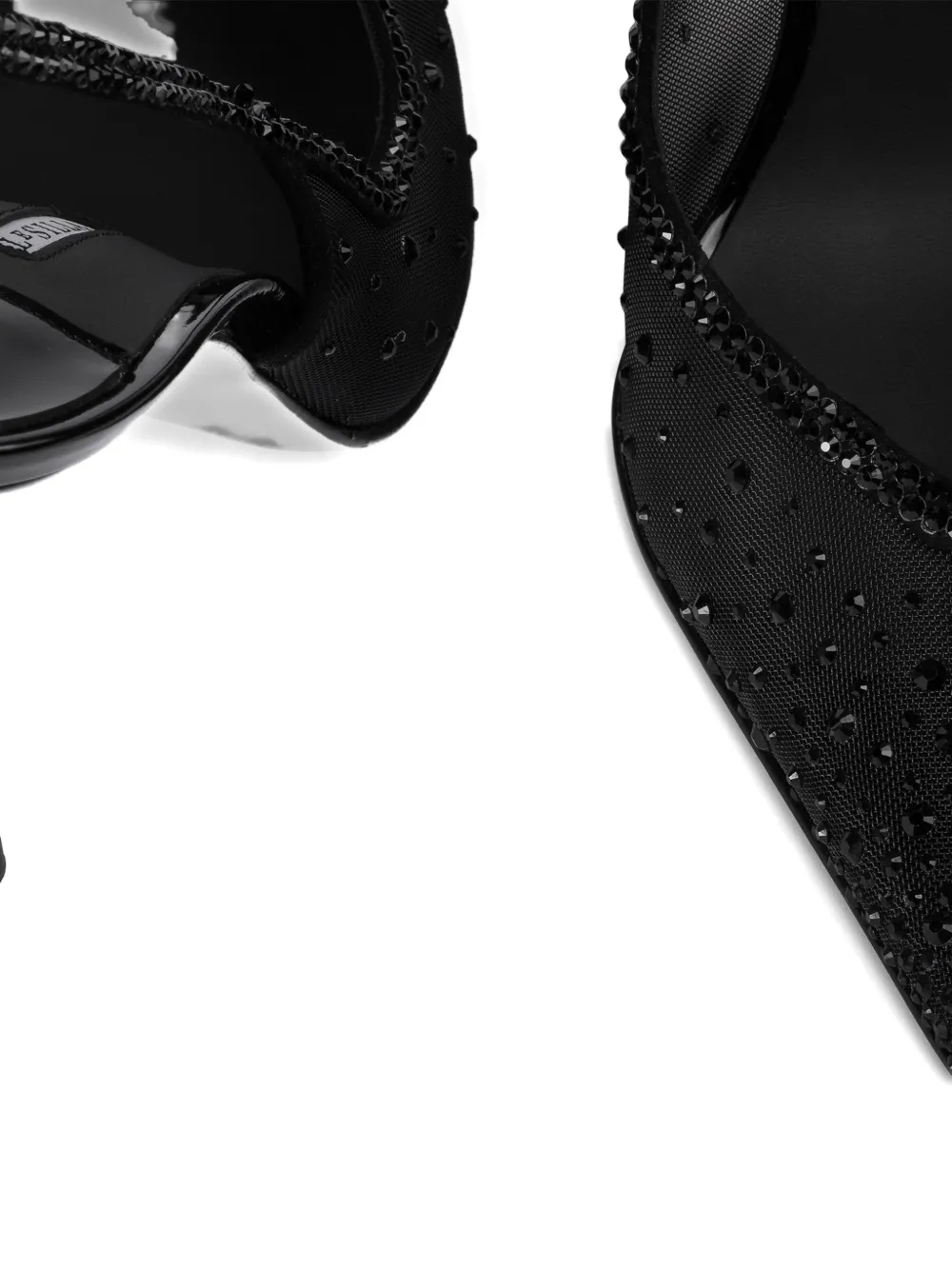 Черные украшенные туфли с ремешком сзади и заостренным носком