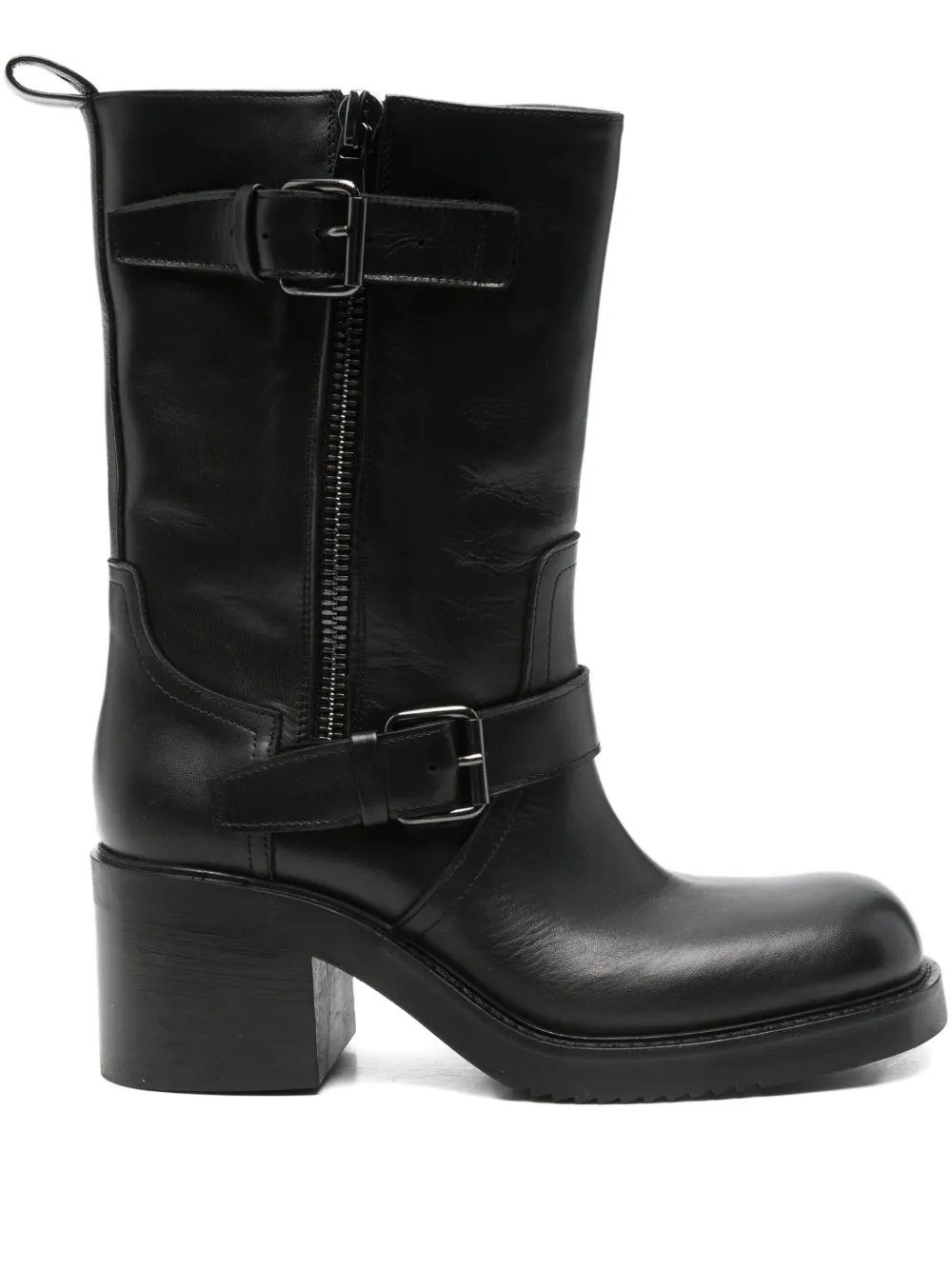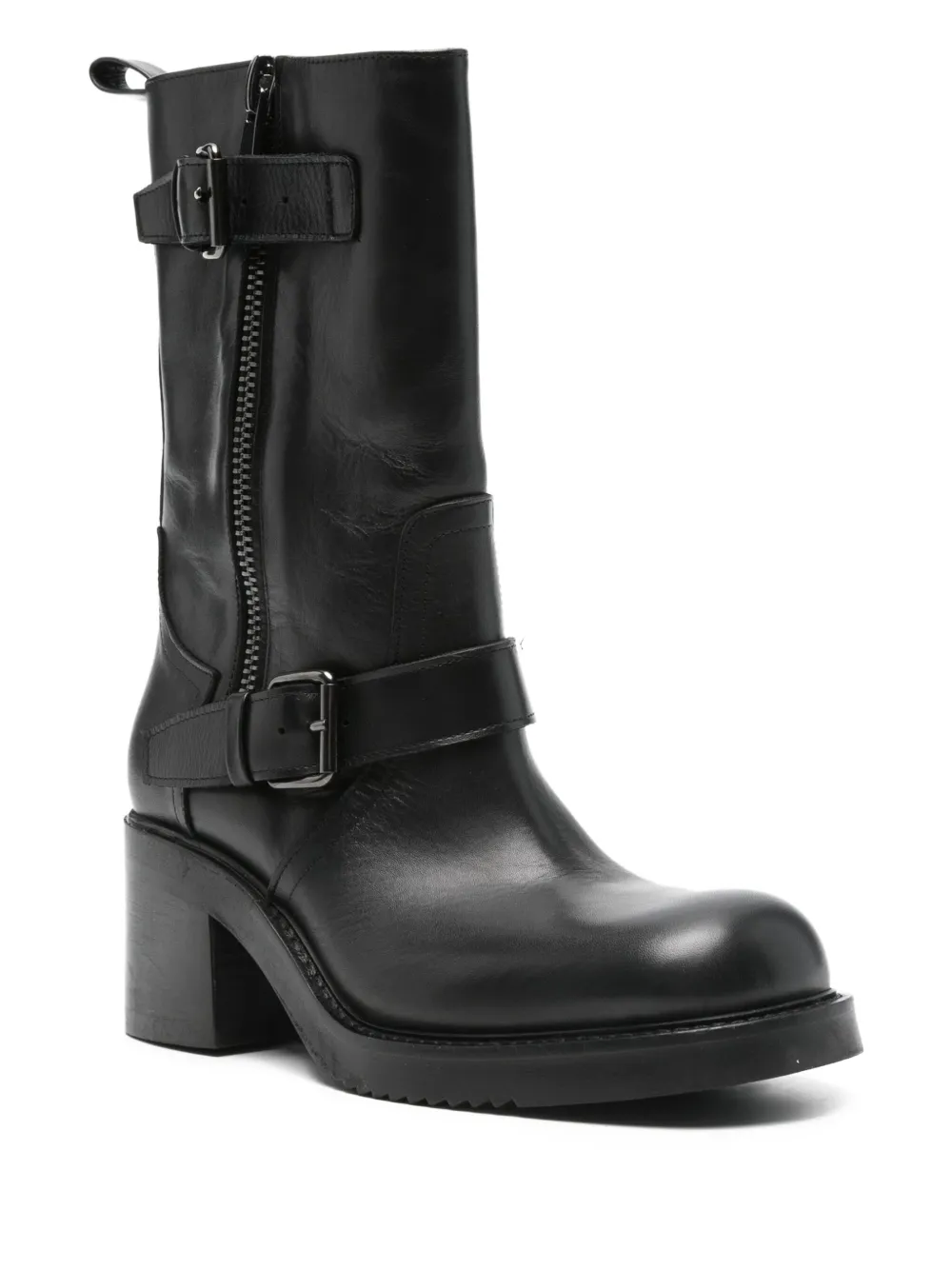 Черный верх из кожи застежка-молния ремешки с пряжками каблук-«колодка»