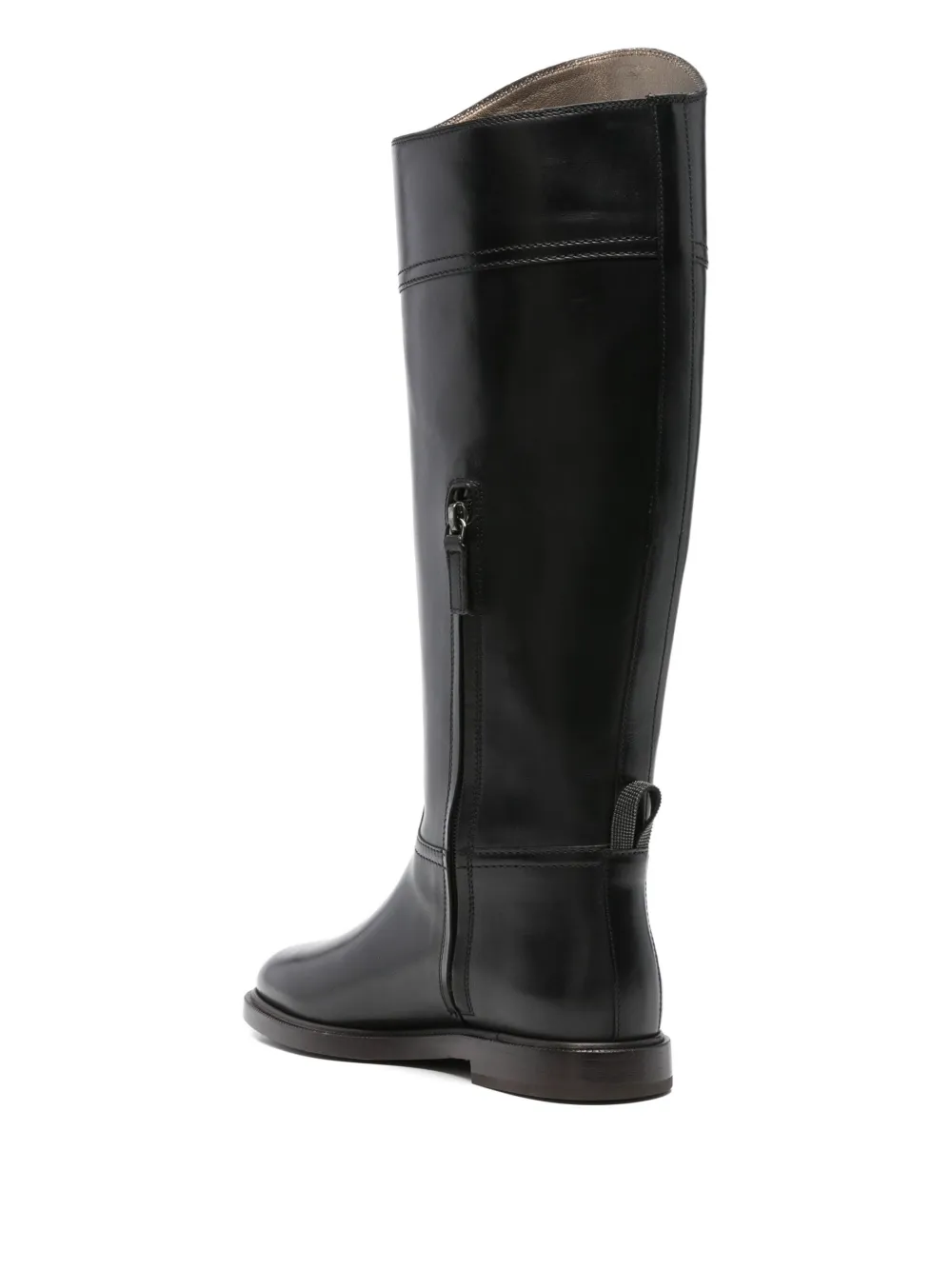 Черная кожа, петля-завязка, застежка-молния, плоская подошва, круглый носок