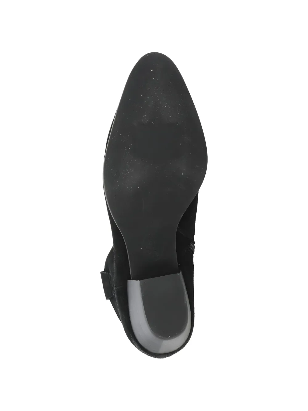 Черный кожаный верх, высокий блочный каблук, застежка-молния, заостренный носок