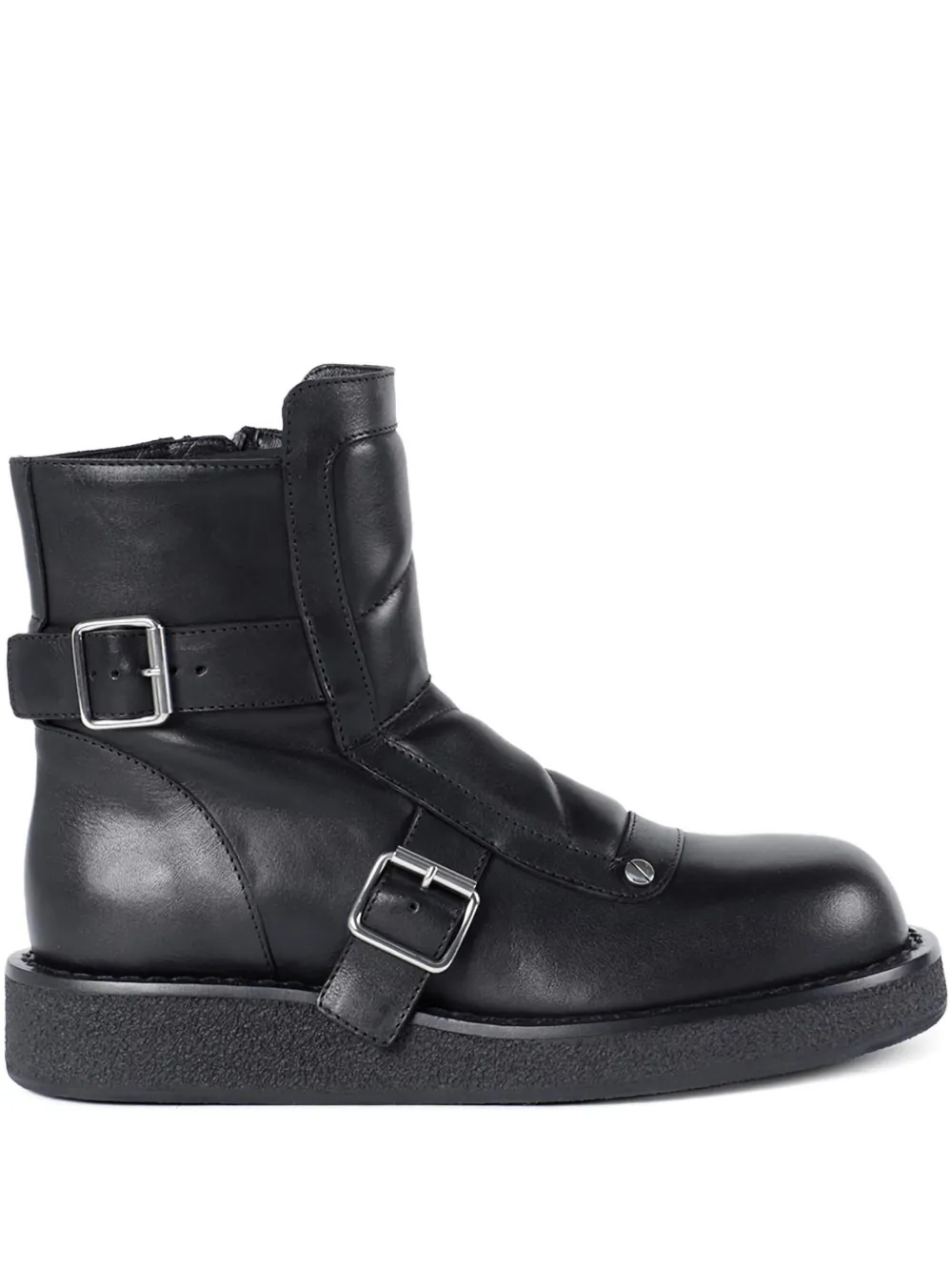 Стеганые кожаные ботинки с пряжкой Ann Demeulemeester, черный