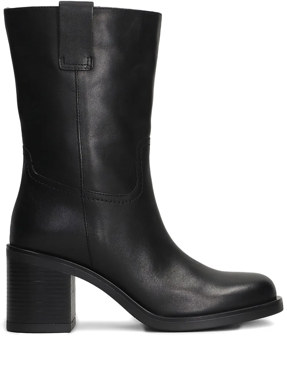 Черные ботильоны на блочном каблуке с боковой молнией, комбинированными вставками и боковой петлей