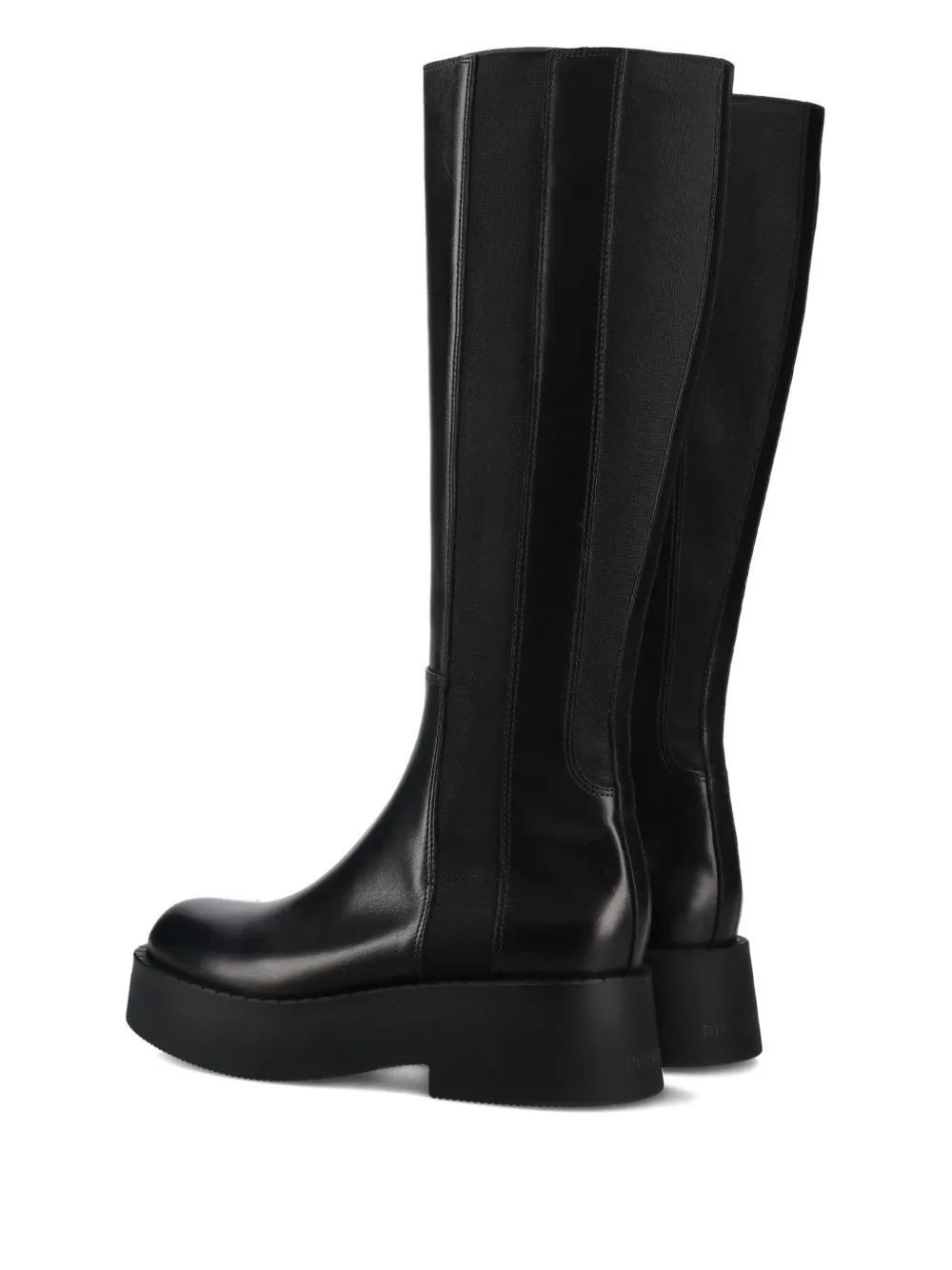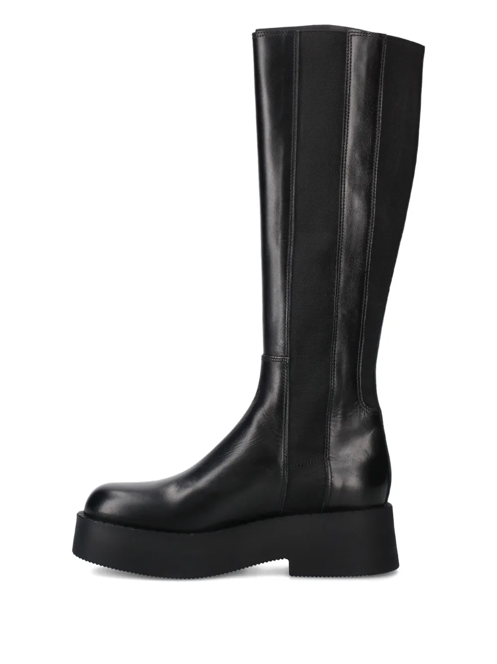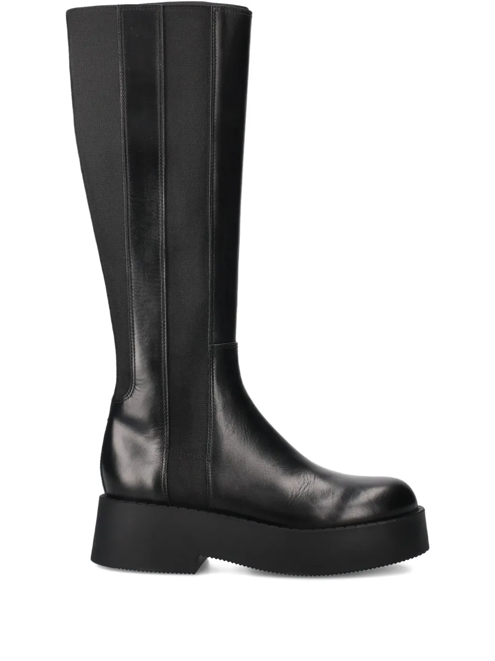 Черная кожа теленка, эластичные вставки, платформенная подошва, модель без застежки, круглый нос