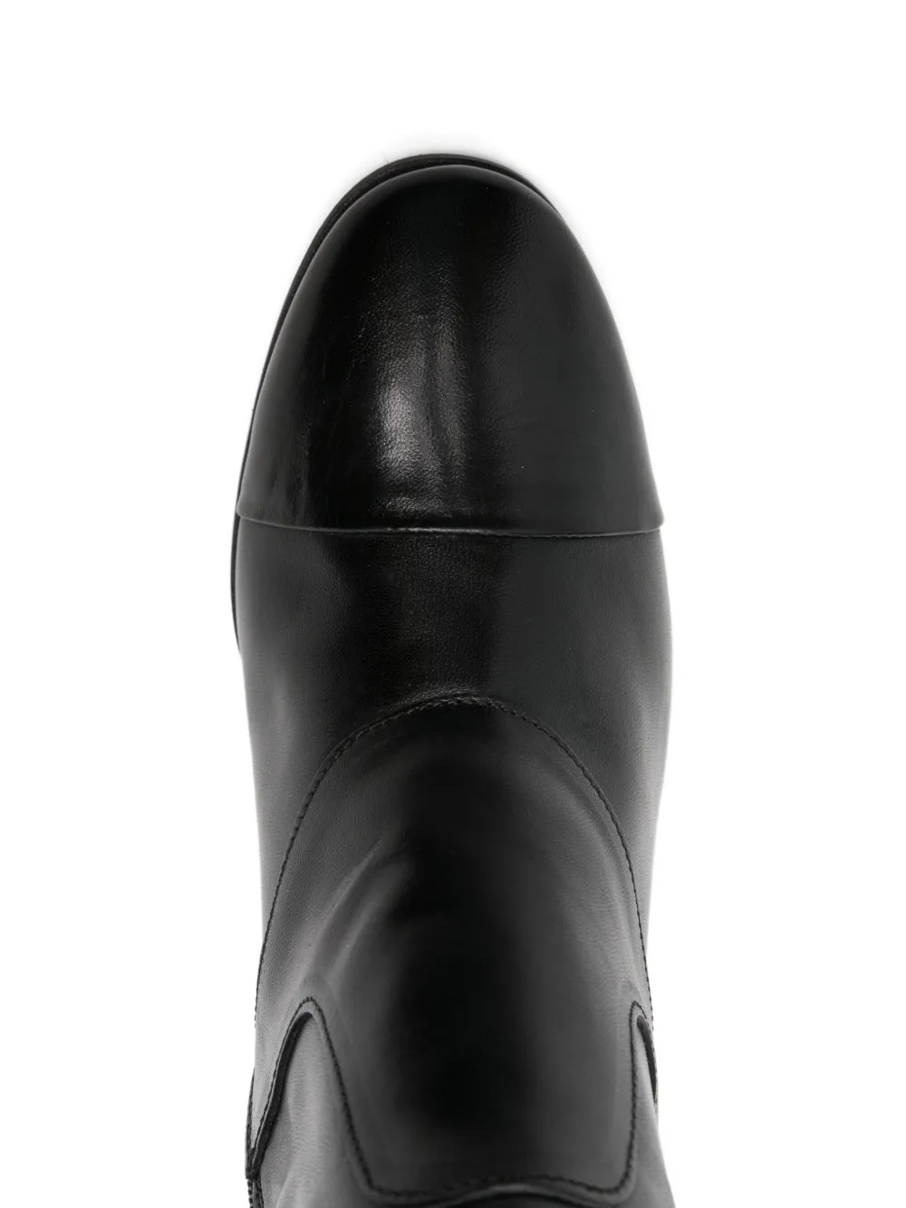 Чернаятеленая кожазастежка-молниякаблук-столбикноск с накладкой