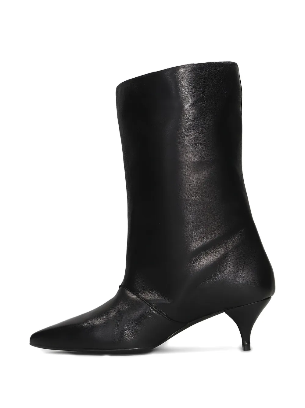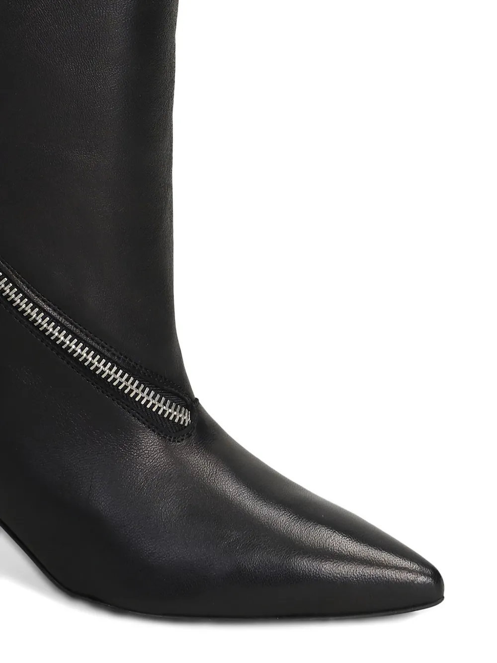 Черные туфли-лодочки на низком каблуке с заостренным носком и молнией