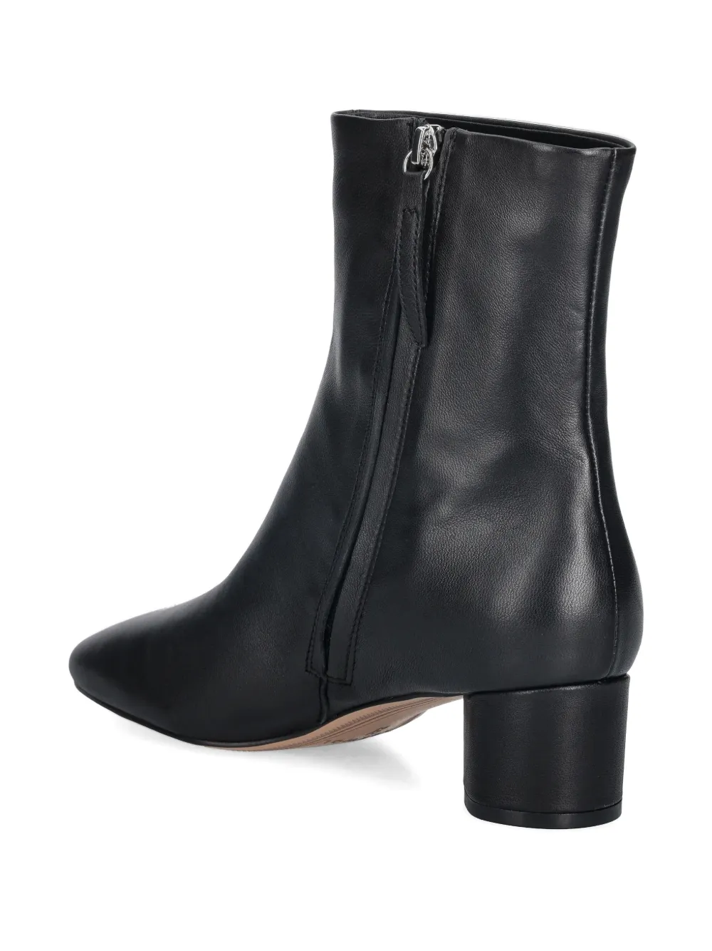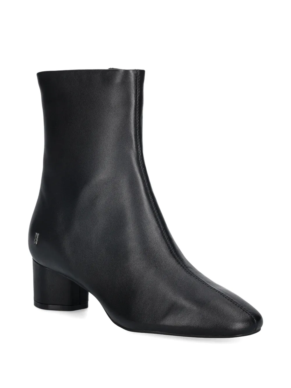 Черные ботинки с боковой молнией, на блочном каблуке, заостренный носок, тональная отделка строчкой, с логотипом