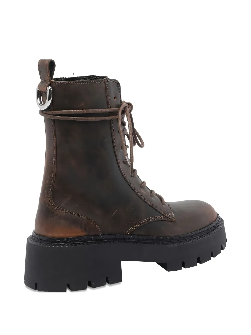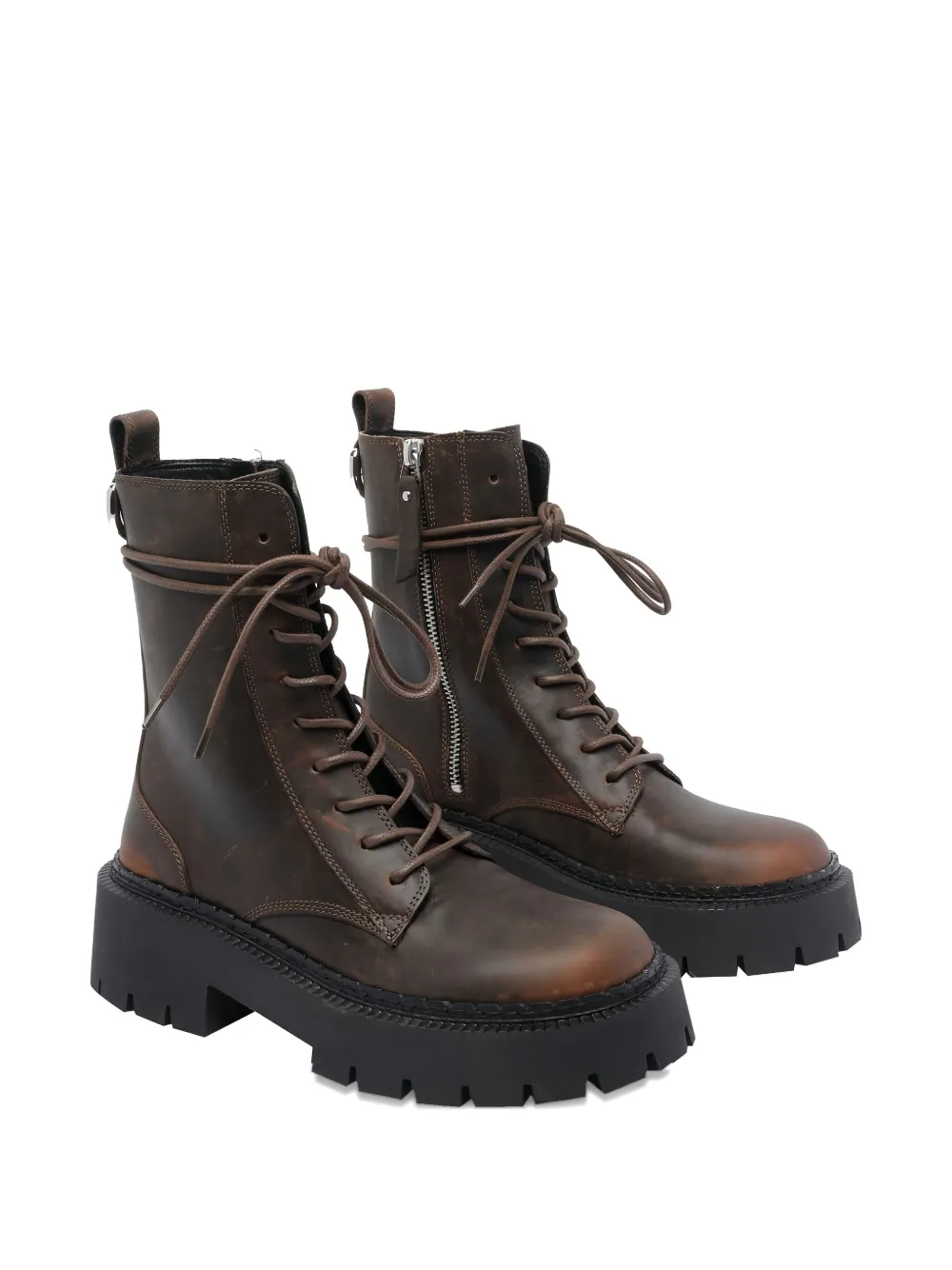 Коричневый кожа застежка спереди на шнуровке платформенная подошва круглый носок застежка-молния сбоку