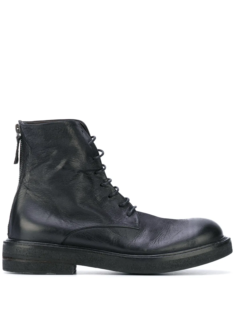Черные ботинки из оленьей и коровьей кожи в стиле милитари от Marsèll(Марсель). Шнуровка, плоская подошва. Пожалуйста, обратите внимание, что эта вещь не может быть отправлена за пределы ЕС.