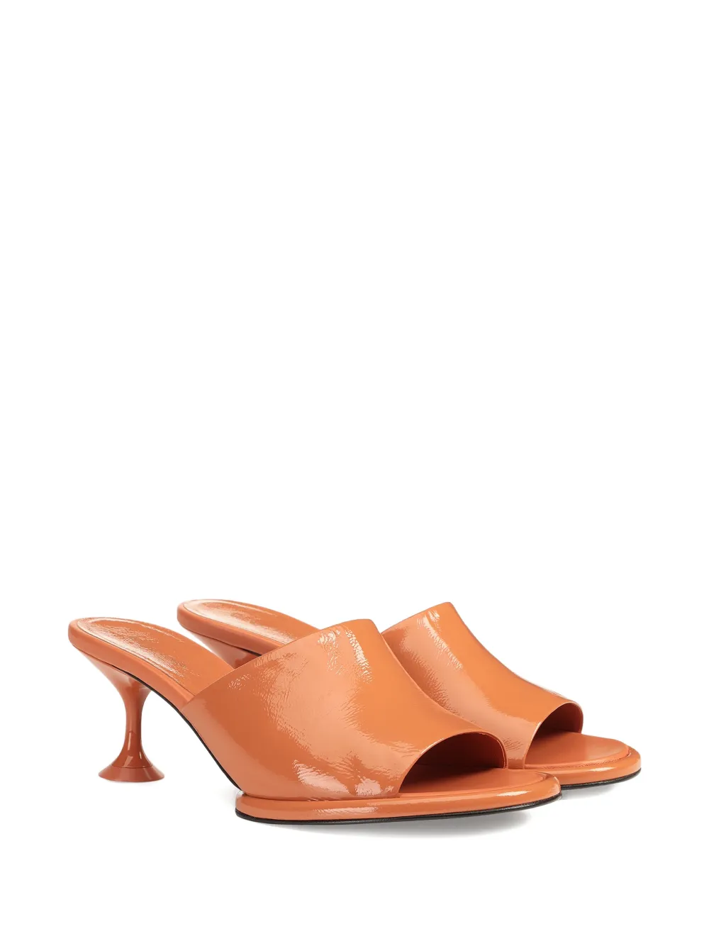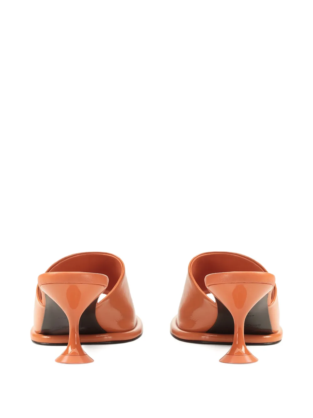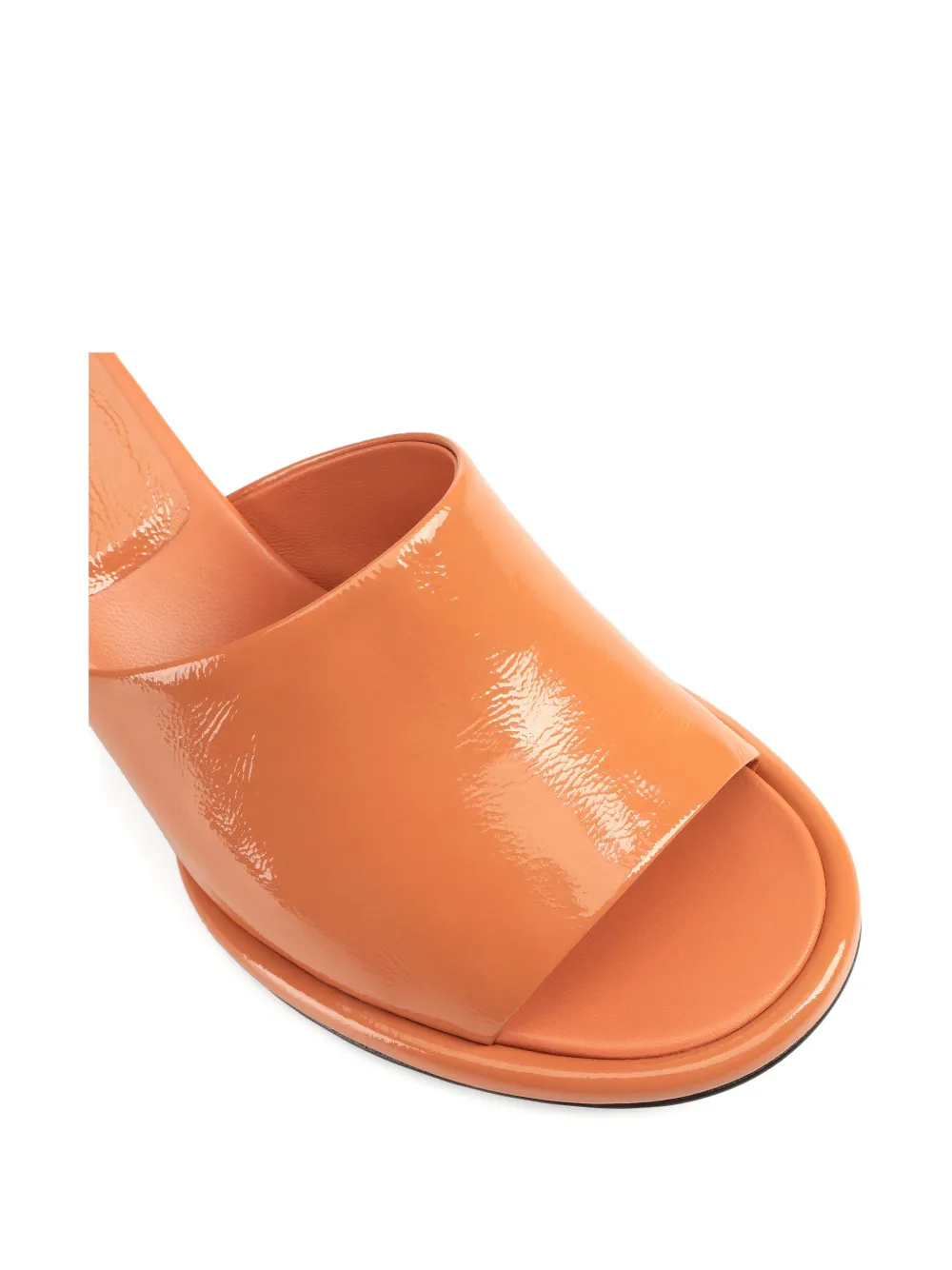 Оранжевые кожаные босоножки на каблуке с открытым носком
