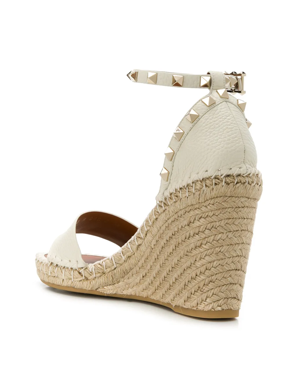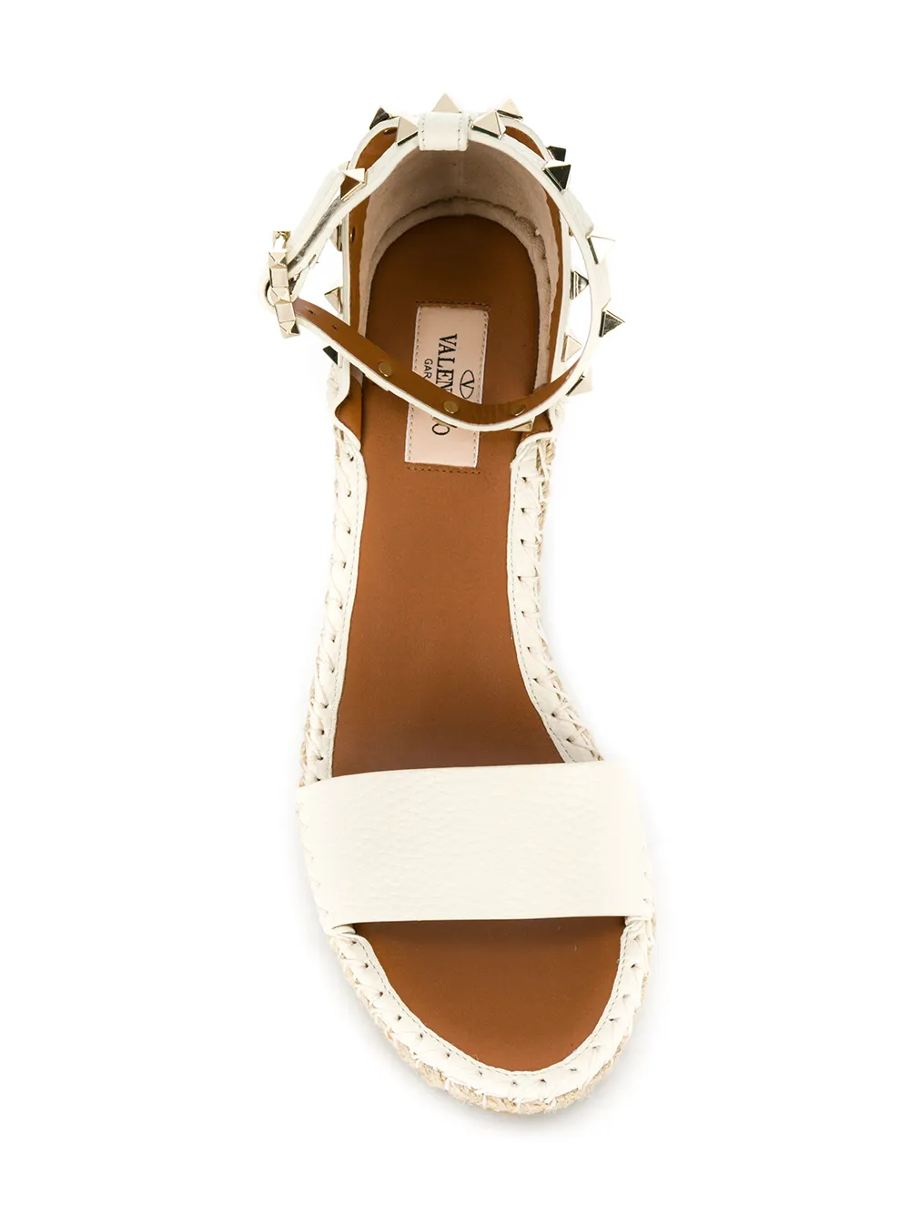 Эспадрильи Rockstud от Valentino Garavani. Ремешок на щиколотке и пряжка сбоку, отделка Rockstud, открытый носок и высокая танкетка.