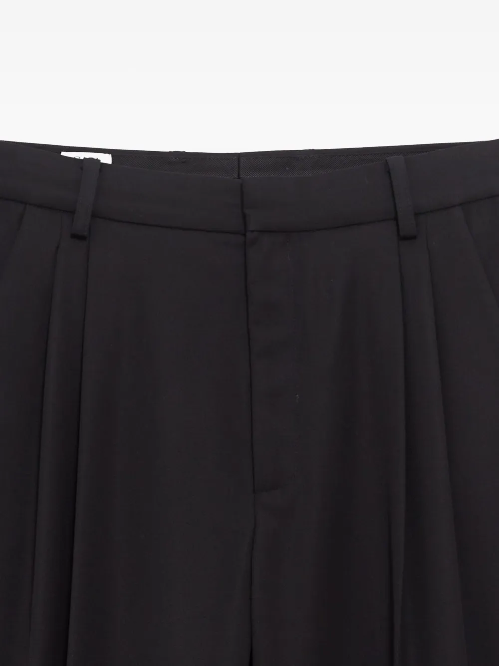 Черные брюки с защипами, шлевки для ремня, пуговица на заднем кармане, боковые карманы в швах, задний прорезной карман