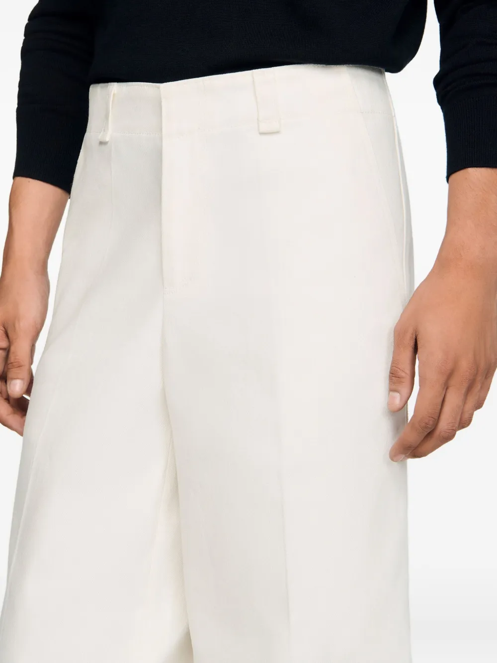 Белые, итальянские карманы, задние карманы, шлевки для ремня, застежка на молнию и пуговицу
