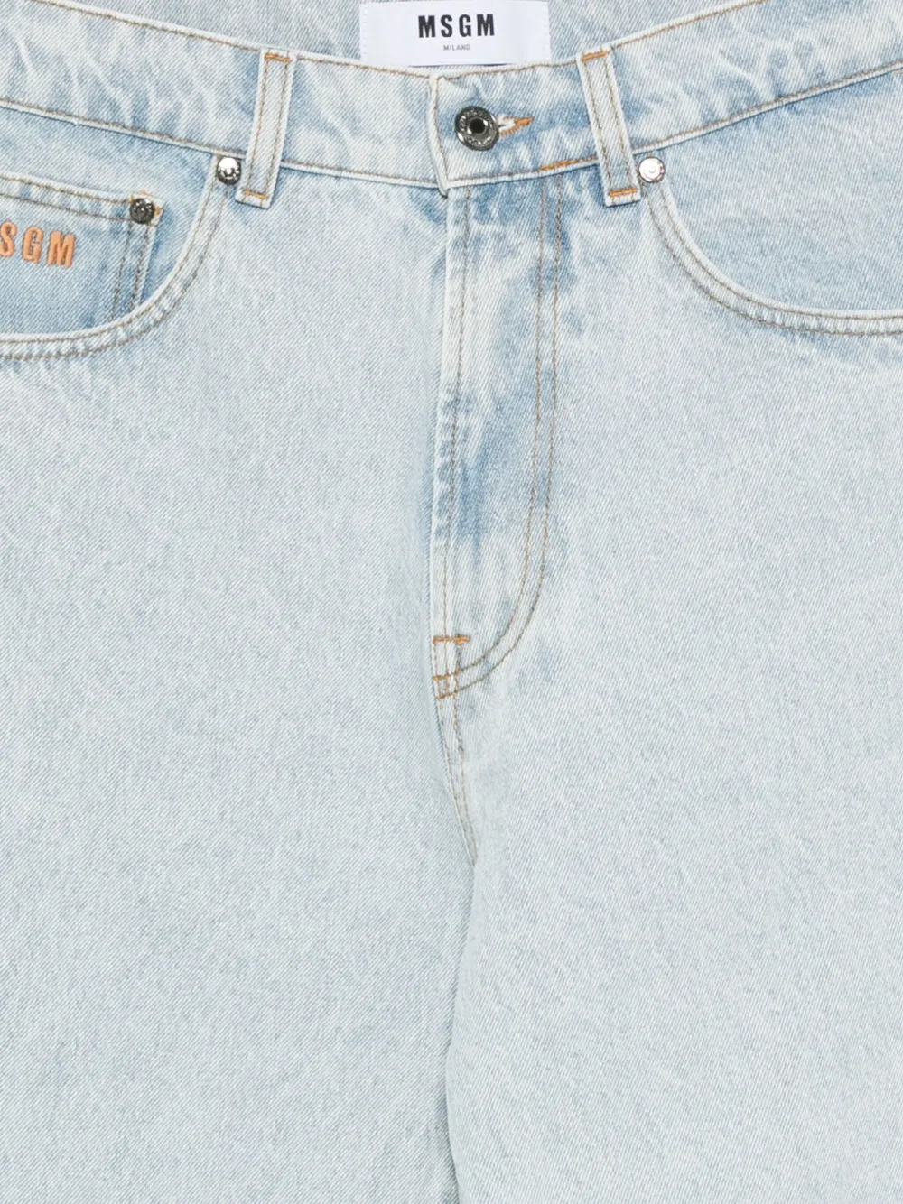 Светло-голубой джинсы с нашивкой-логотипом, пять карманов, застежка на пуговицы, прямой крой