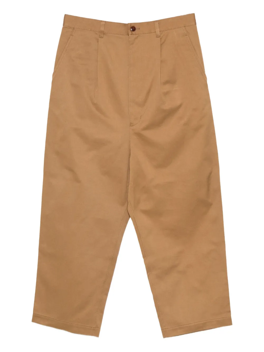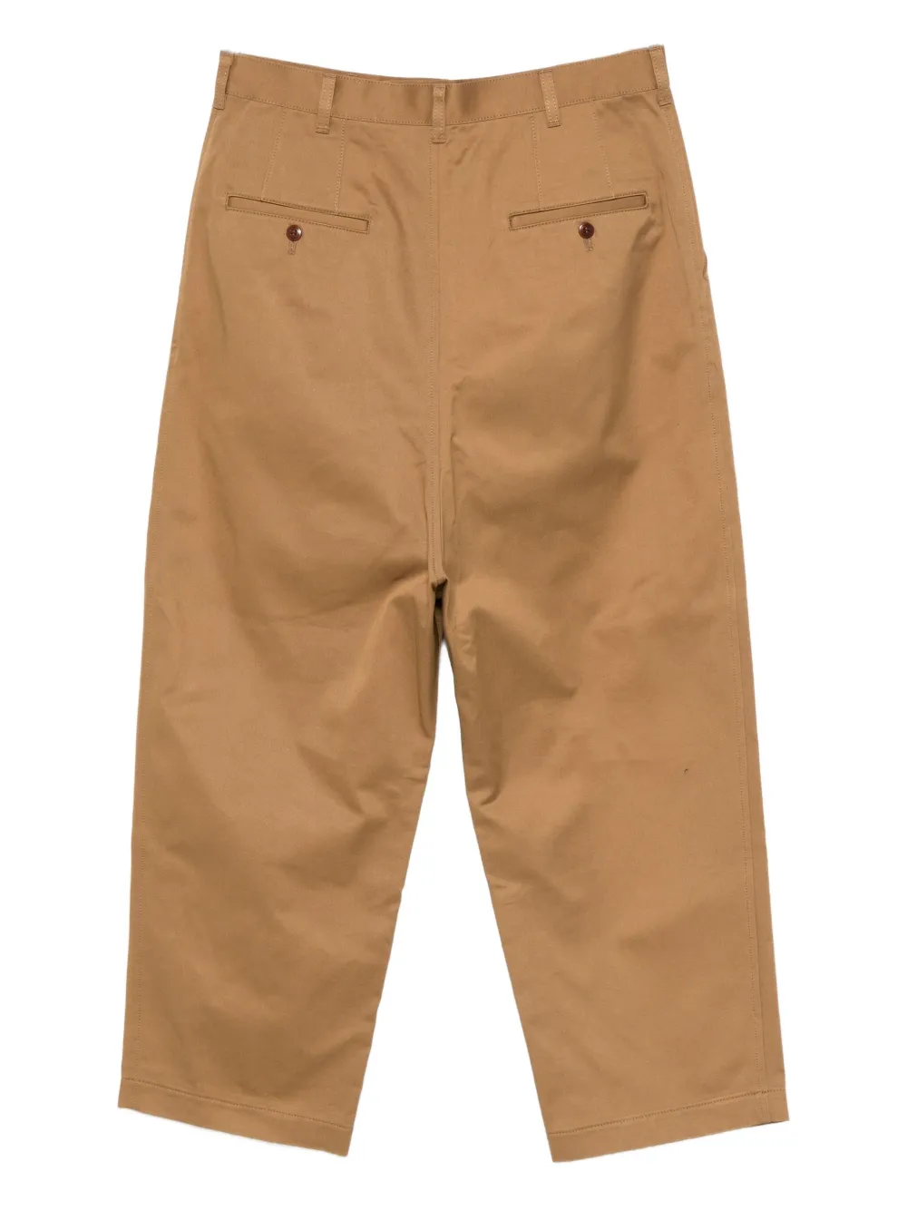 Бежевые застежка на пуговицу и молнию спереди боковые карманы с прорезями задние карманы в рамку прямые брючины
