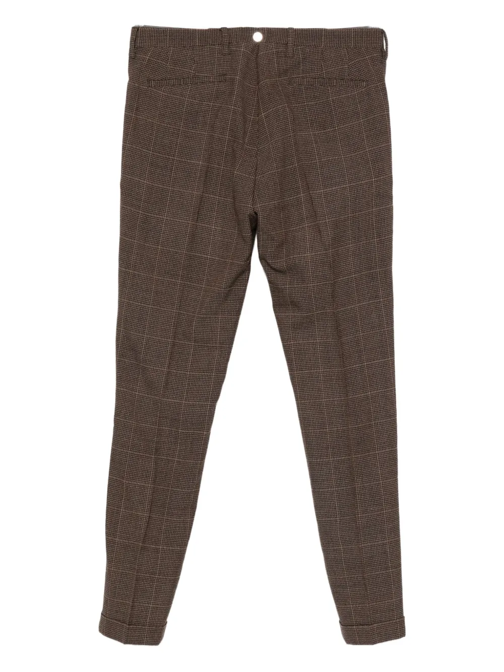 Коричневый в клетку застежка на пуговицу и молнию спереди прямые брюки шлевки для ремня