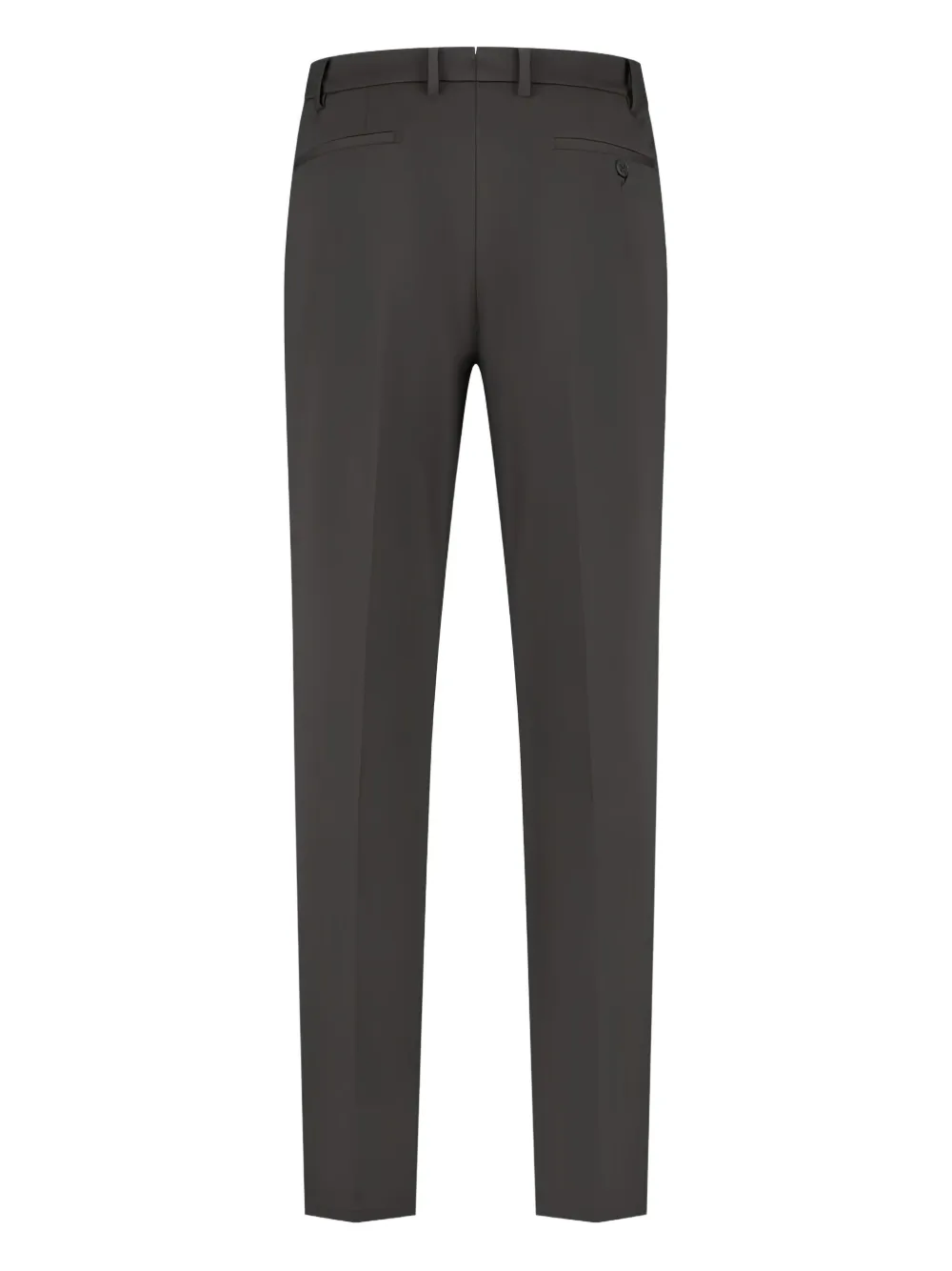 Темно-коричневые брюки со средней посадкой, прямыми штанинами, застежкой на пуговицах, без защипов, прорезными карманами
