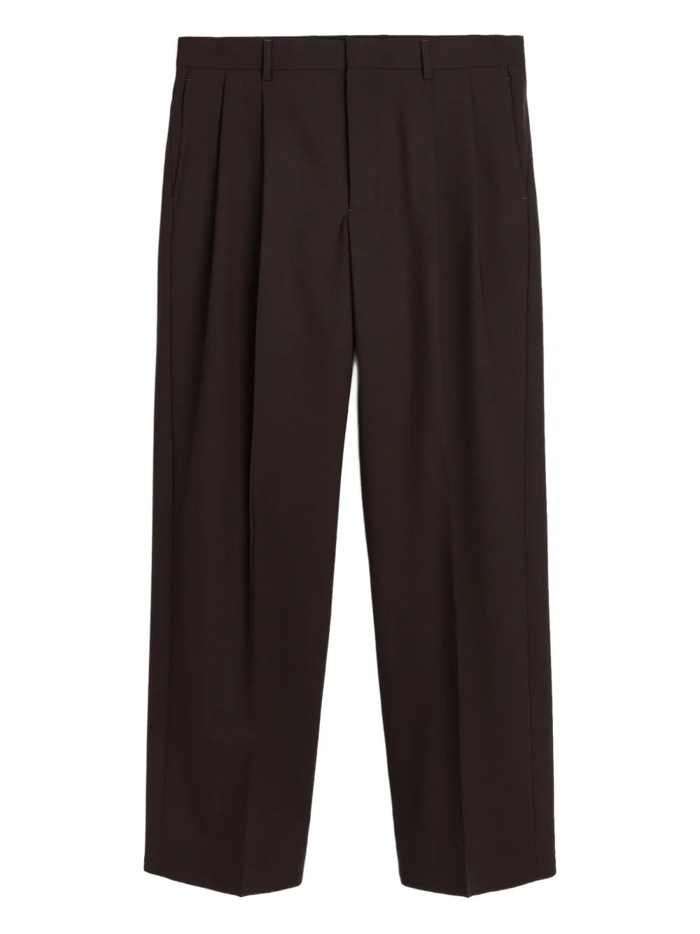 Коричневые плиссированные брюки сзади на пуговицах, шлевки для ремня, скрытая застежка