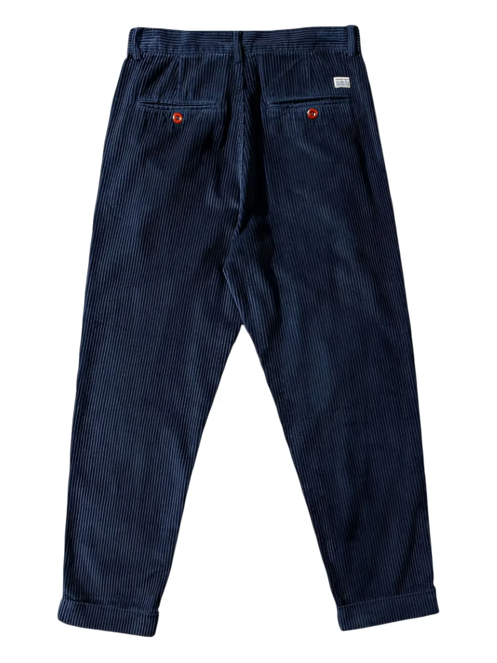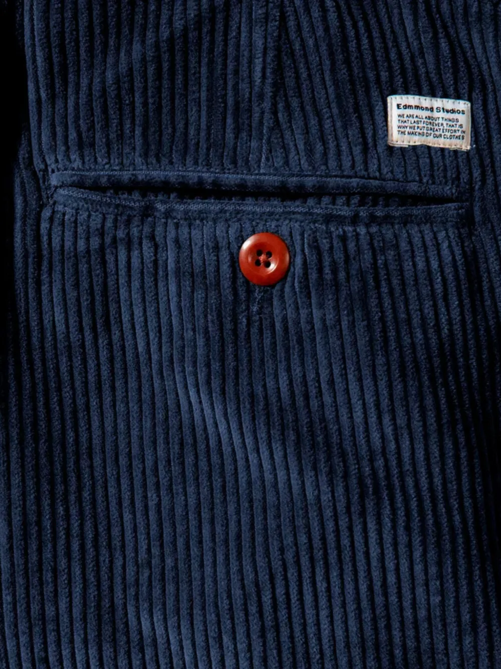 Синяя вельветовая фактура, пуговицы, задний накладной карман, подвернутый низ