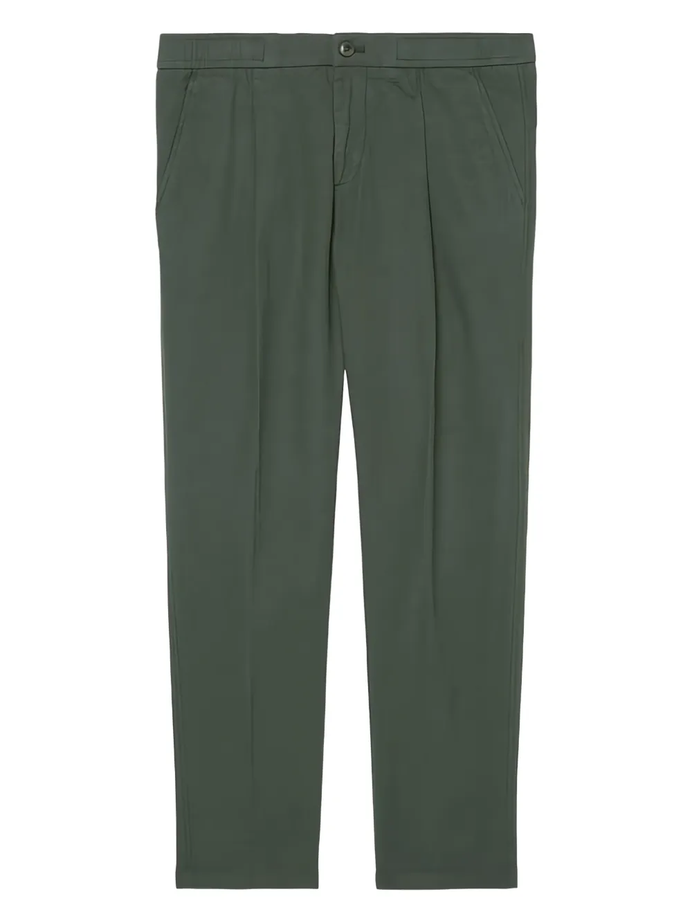 Темно-зеленый, застежка на пуговицы, шлевки для ремня, задний прорезной карман, складки спереди, прямые брюки