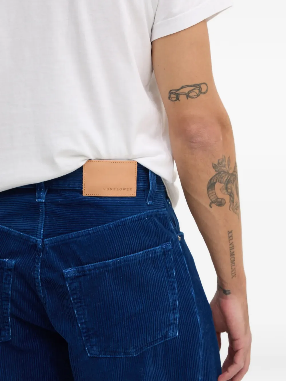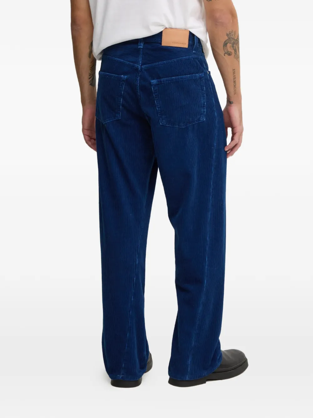 Синий вельвет, текстура, шлевки для ремня, пять карманов, нашивка с логотипом сзади