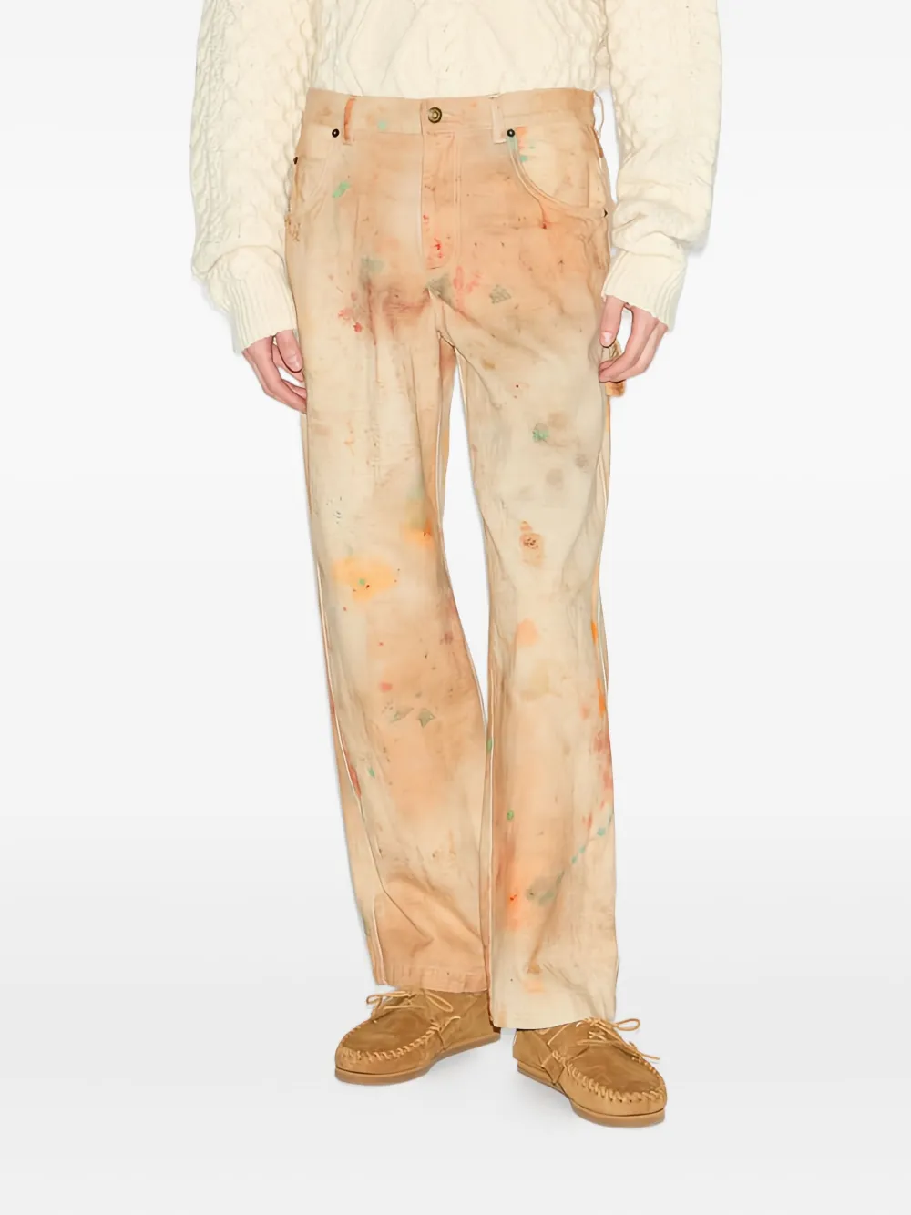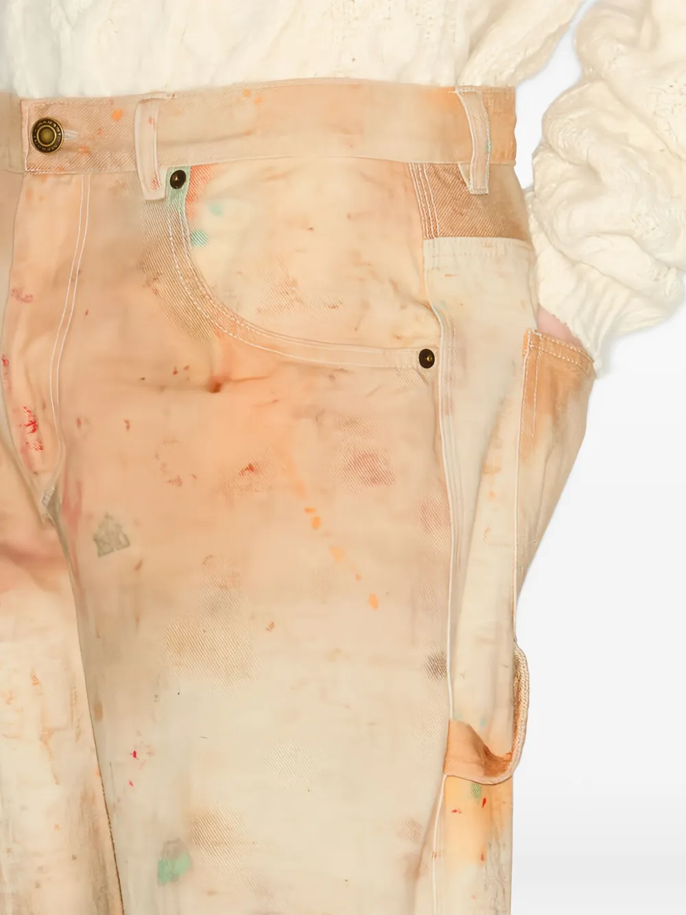 Бежевый с многоцветными брызгами, шлевки для ремня, накладной карман спереди, накладные карманы сзади