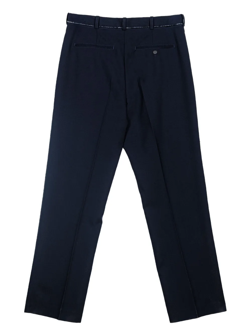 Синяя отстрочка, застежка на пуговицы, шлевки для ремня, задний прорезной карман