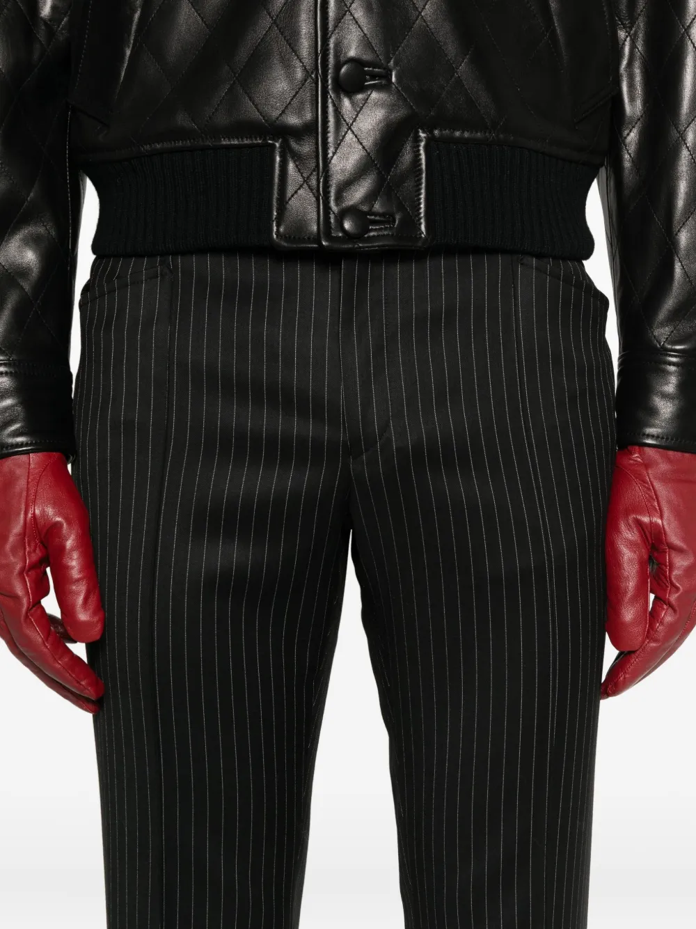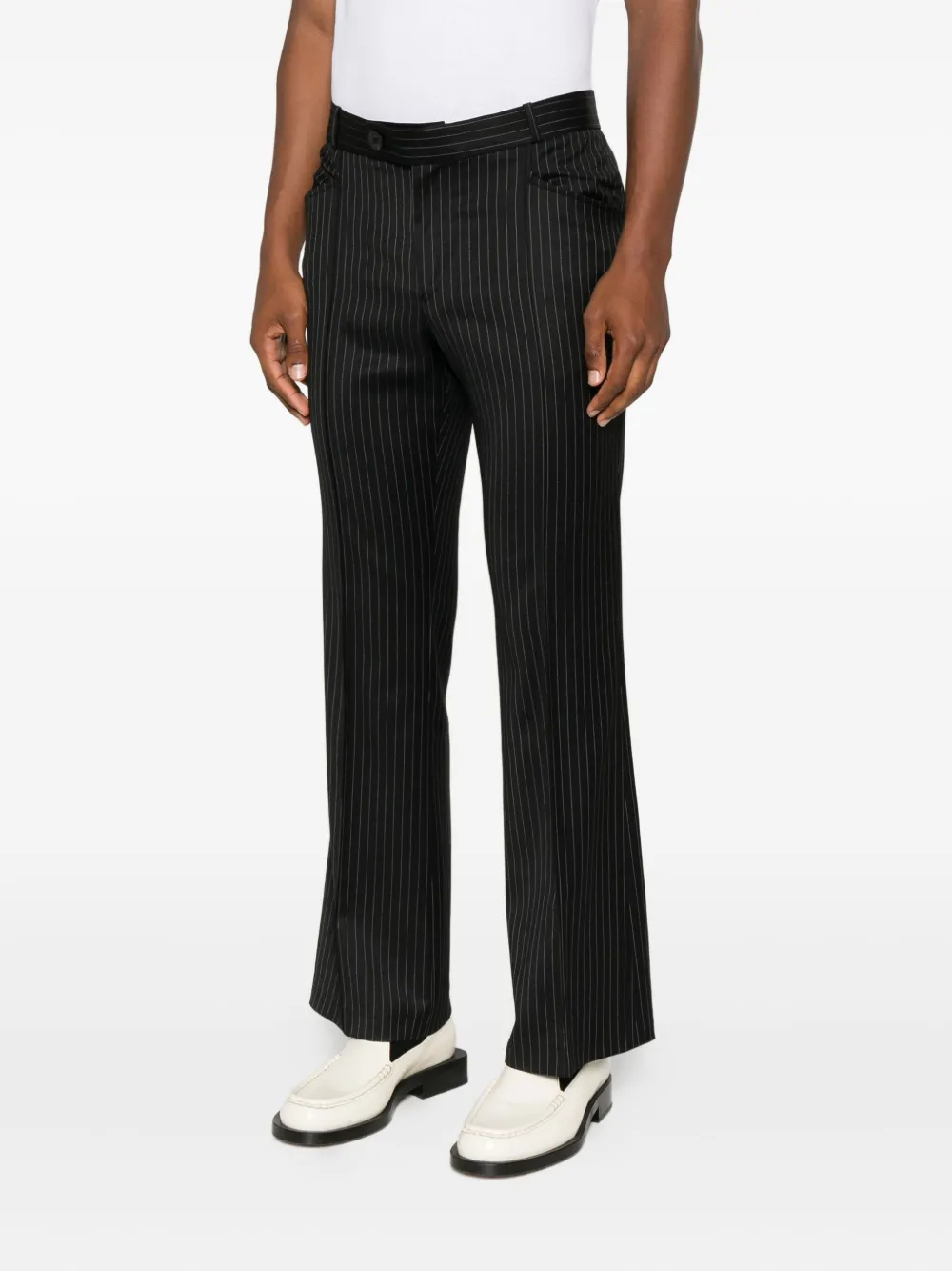 Черный в полоску прямая штанина средняя посадка застежка на пуговицах шлевки для ремня