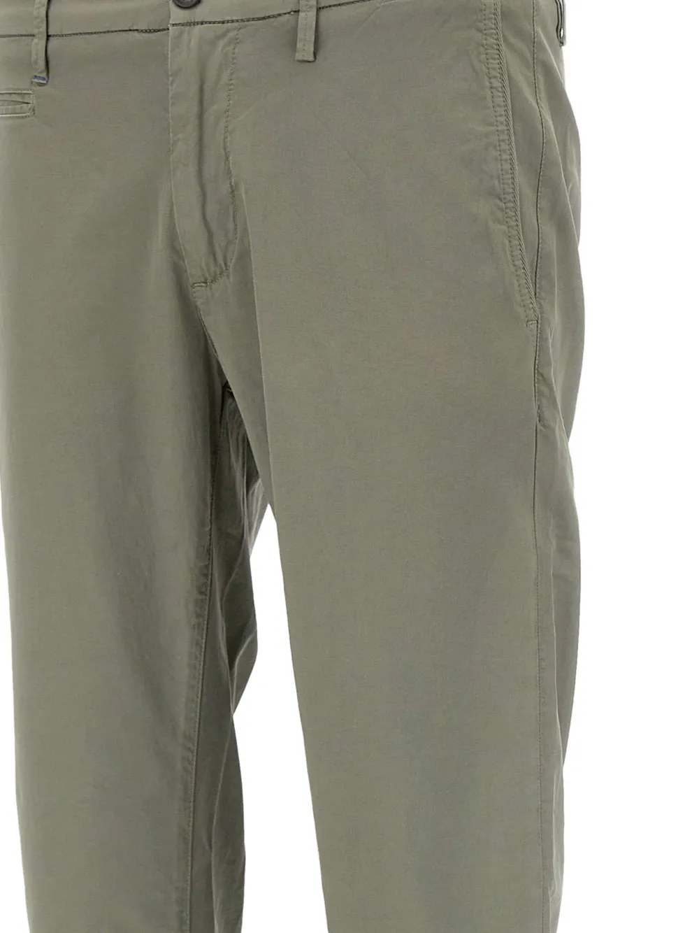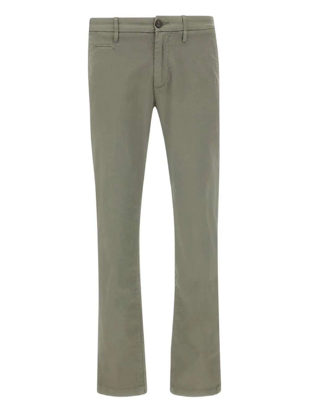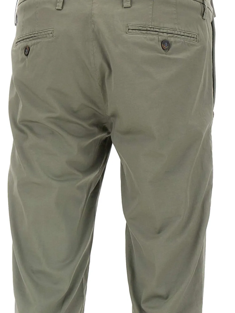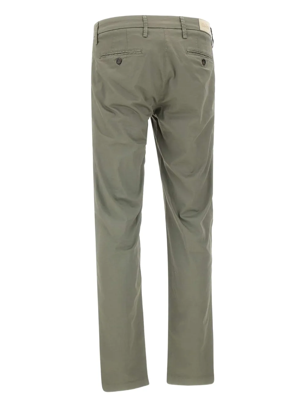 Зеленый цвет, шлевки для ремня, задние прорезные карманы, застежка на пуговицу, нашивка с логотипом