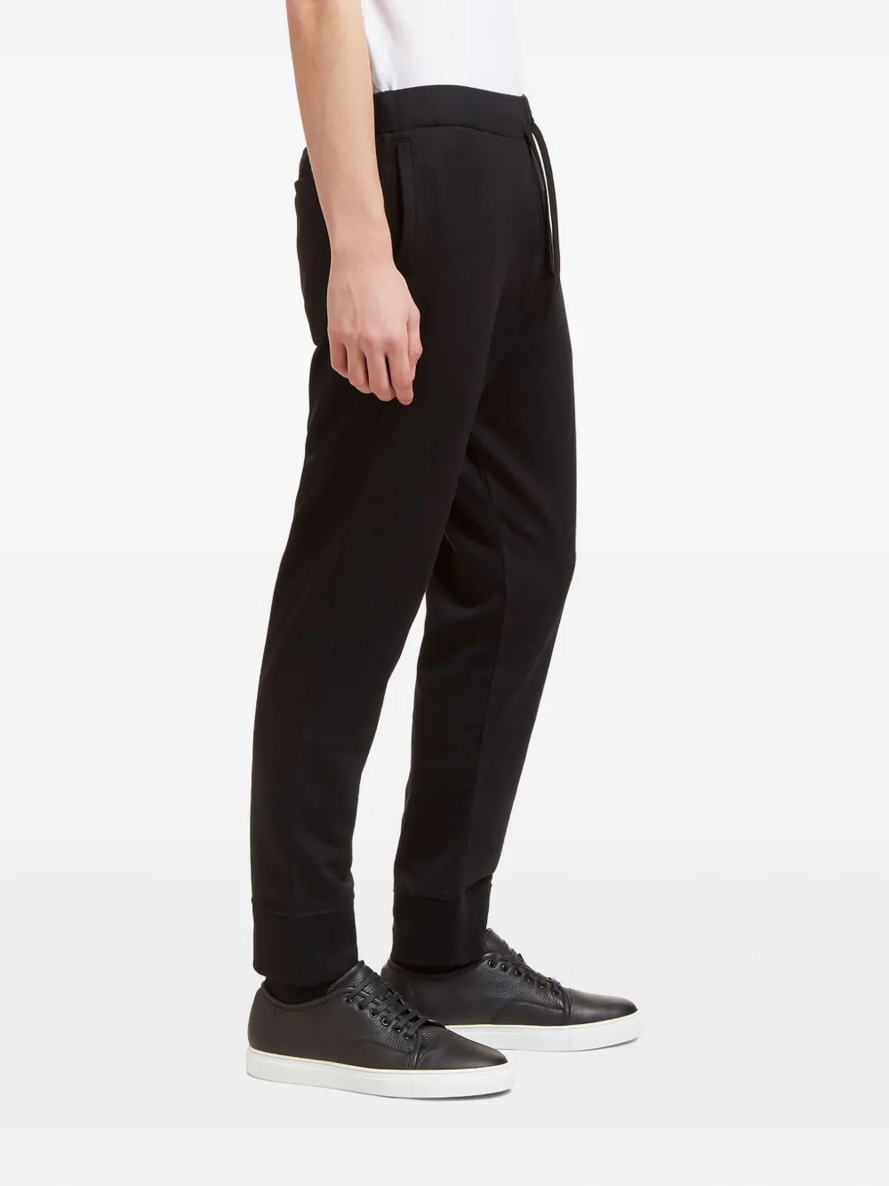 Черный эластичный пояс на завязках боковые прорезные карманы задний прорезной карман смесь шерсти и хлопка