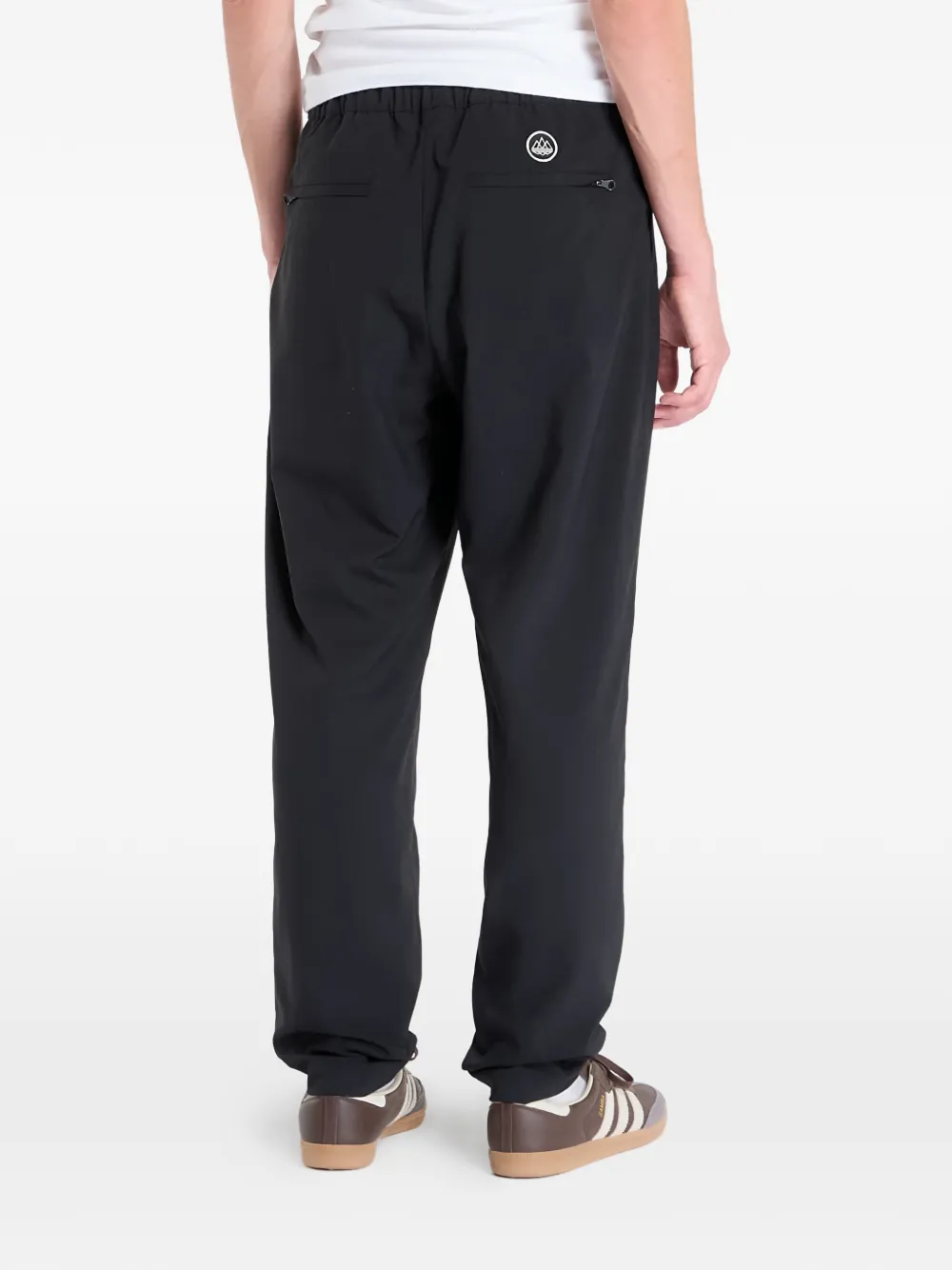 Черная нашивка с логотипом, боковая застежка-молния, застежка-молния сзади, эластичный пояс, прямые брючины