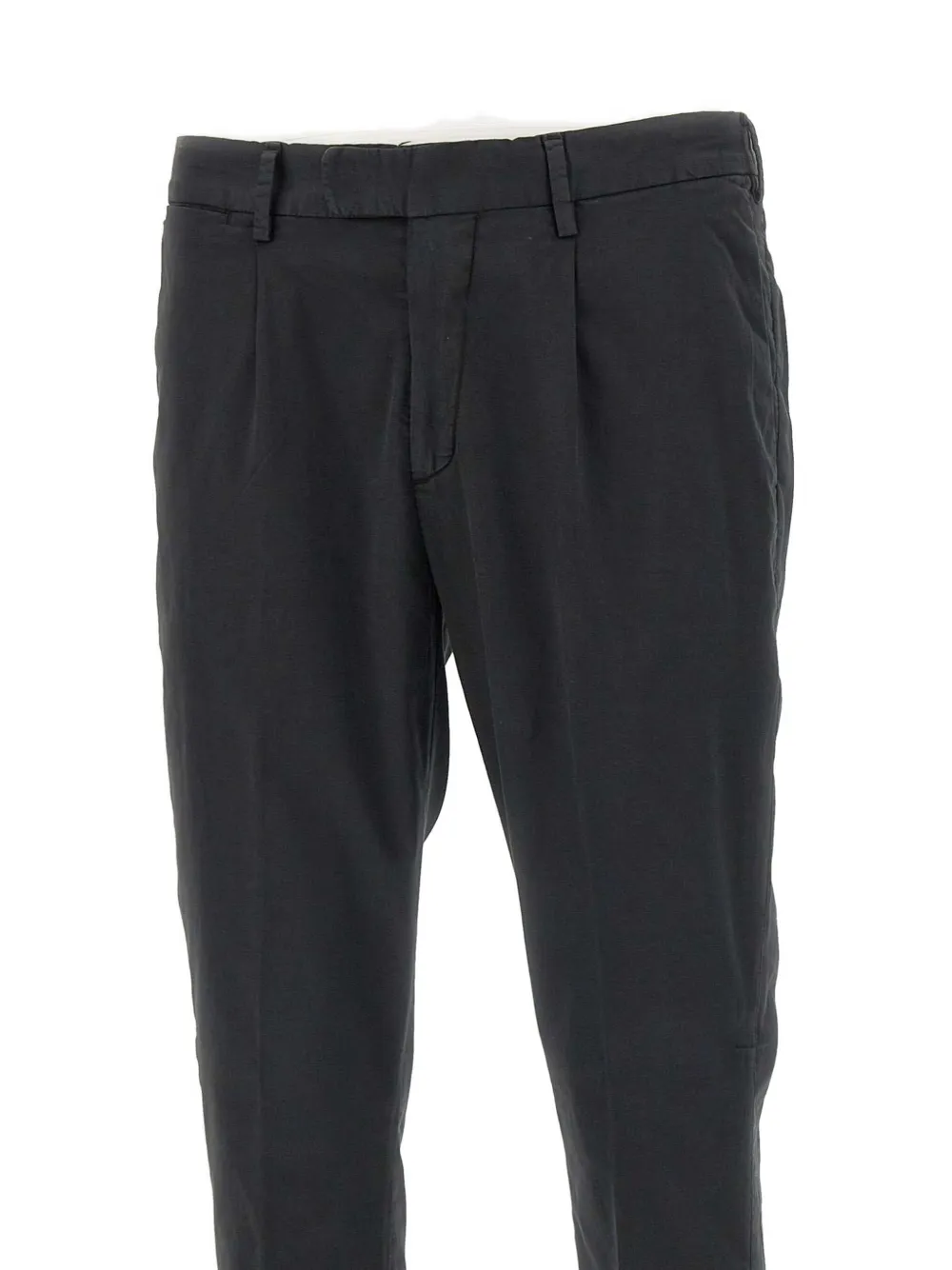 Черные шлевки для ремня, боковые карманы, прорезные карманы, застежка на пуговицу и молнию