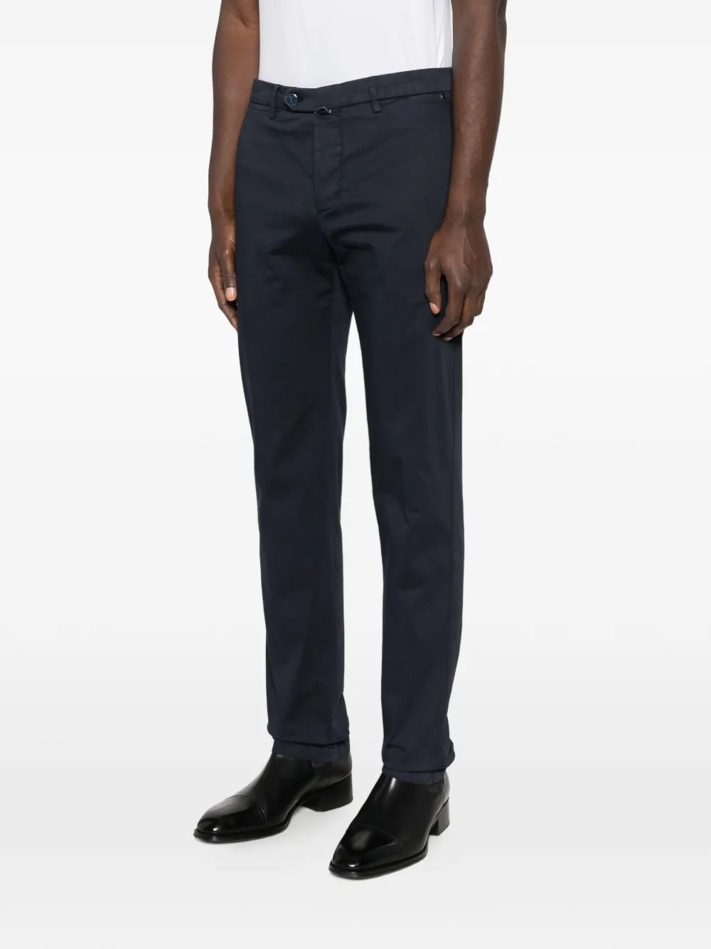 Синие, шлевки для ремня, застежка на пуговицу, боковые карманы, задние карманы