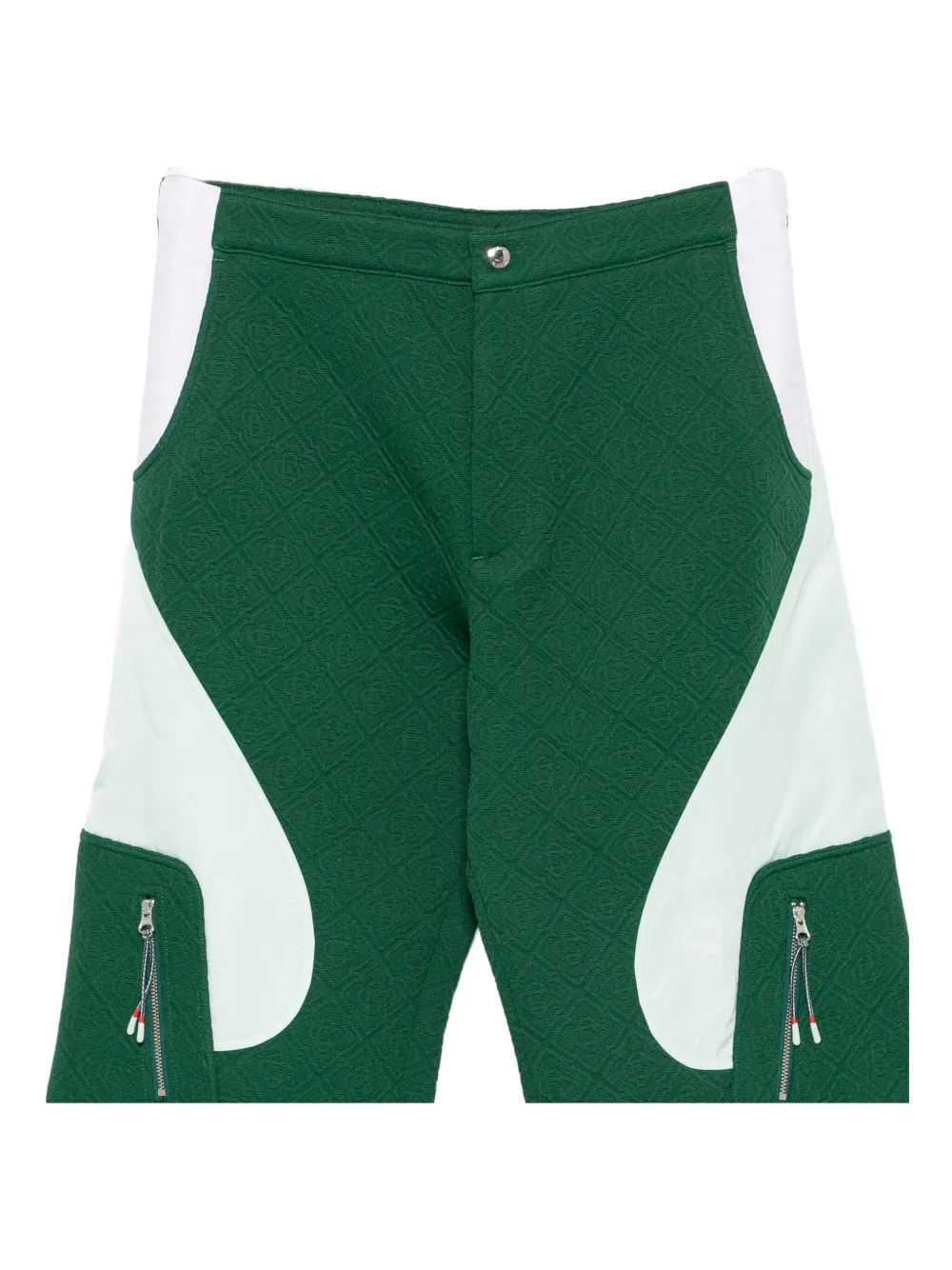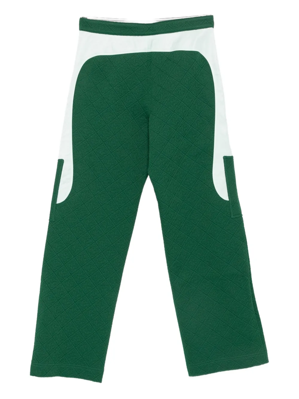 Зеленый стеганная фактура белая вставка карманы на молнии закругленная форма карманов прямые брючины