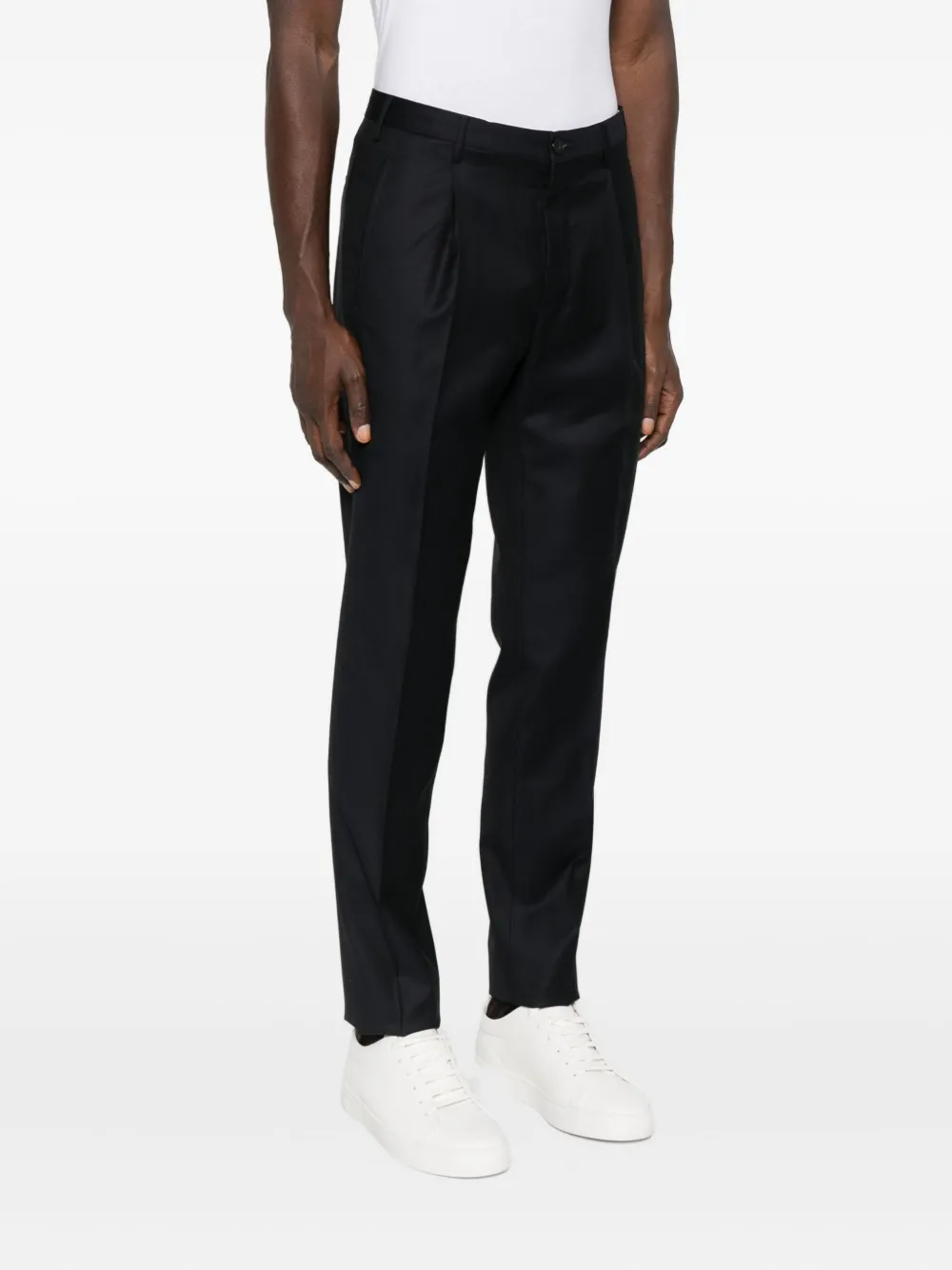 Синий защипы спереди боковые прорезные карманы застежка на пуговицу и молнию спереди шлевки для ремня