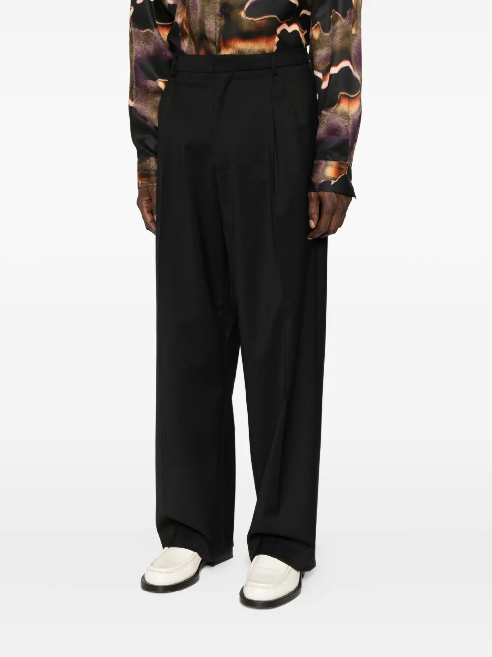 Черный застежка на пуговицу и молнию спереди прямой крой брючин шлевки для ремня боковые прорезные карманы
