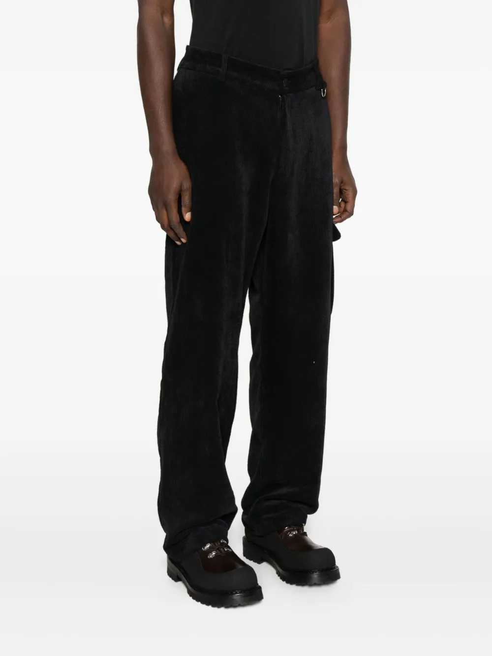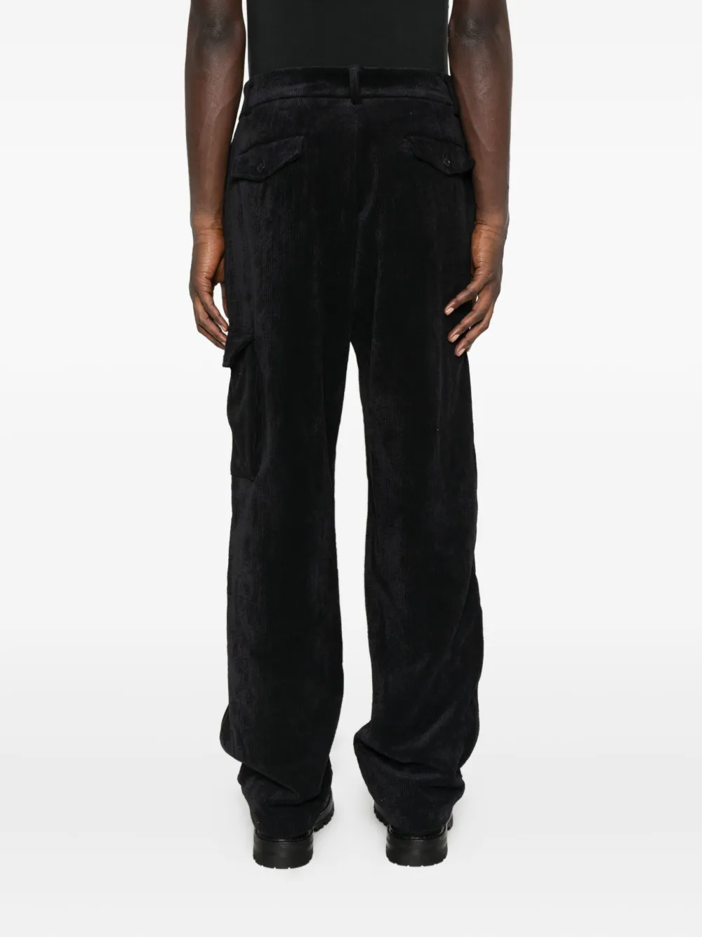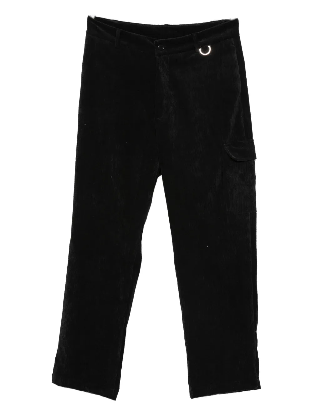 Черный вельветовая текстура накладной карман деталь с D-образным кольцом застежка на пуговицу и молнию прямые брючины