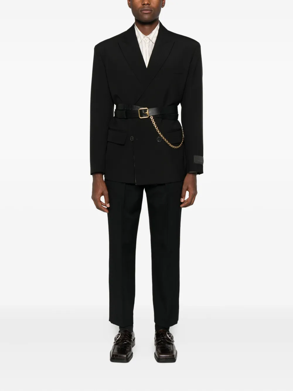 Черные брюки со складками спереди, шлевками для ремня, боковыми карманами в швах, задними прорезными карманами и скрытой застежкой спереди