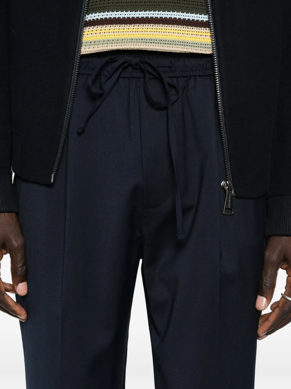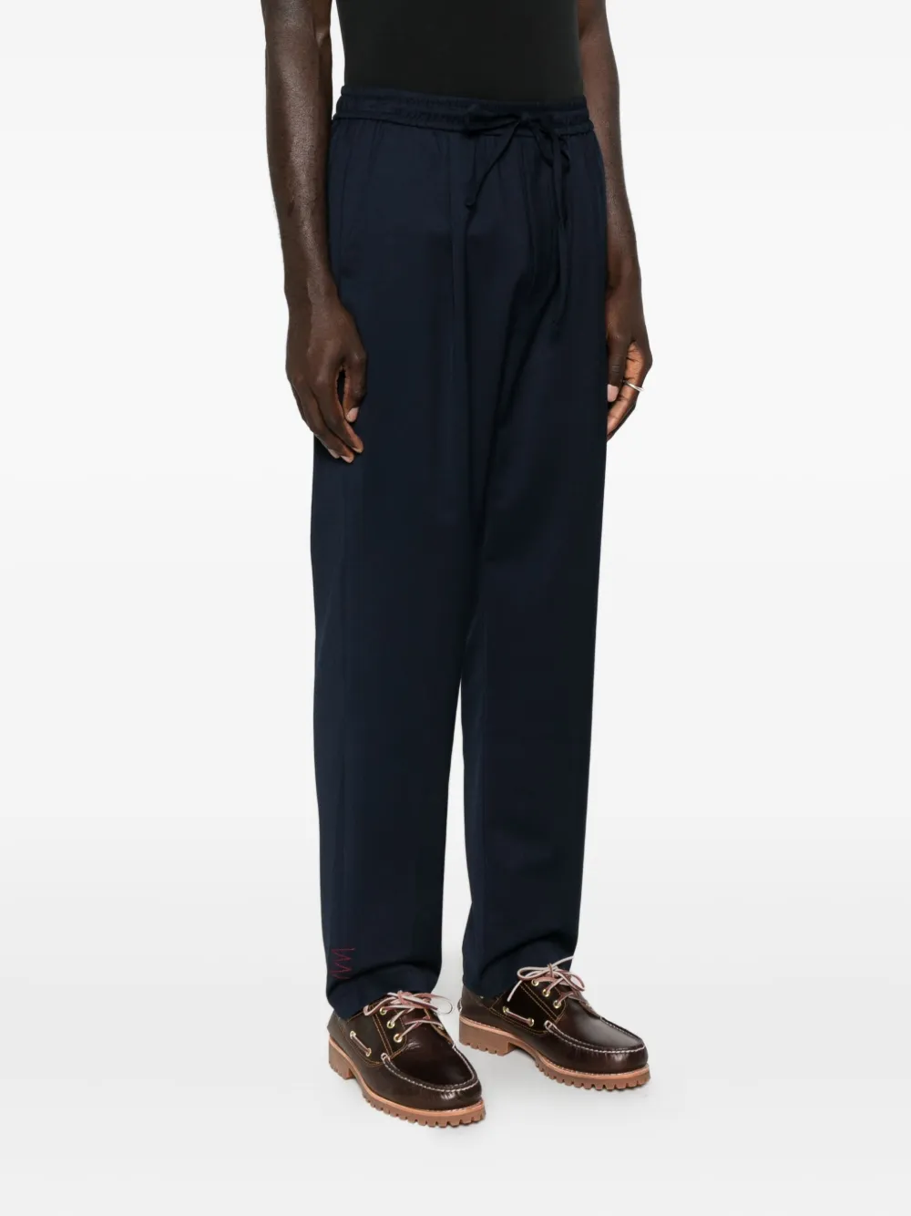 Темно-синий застежка на шнурок эластичный пояс карманы в боковых швах тональная строчка