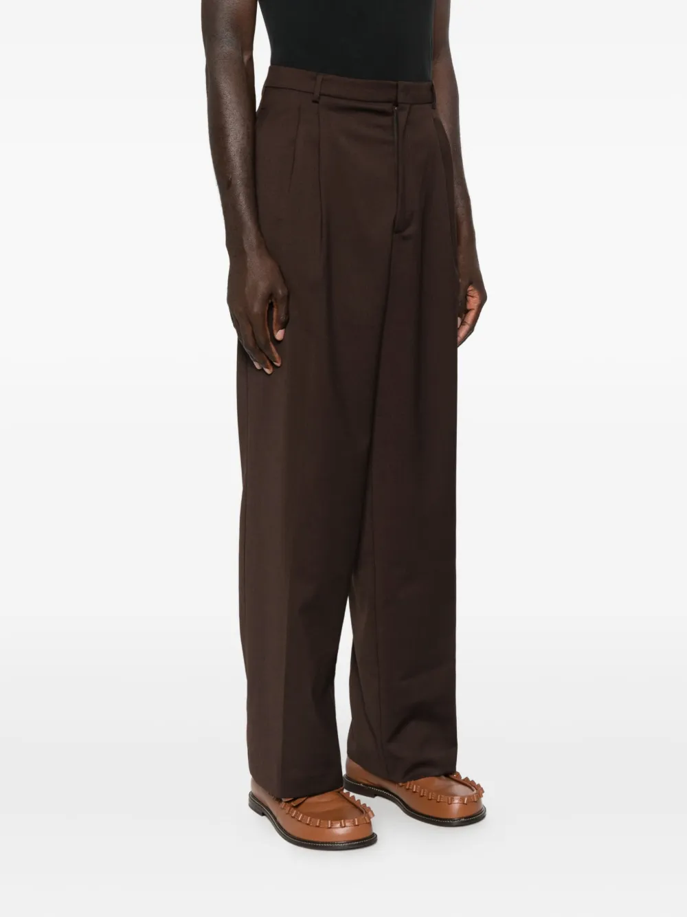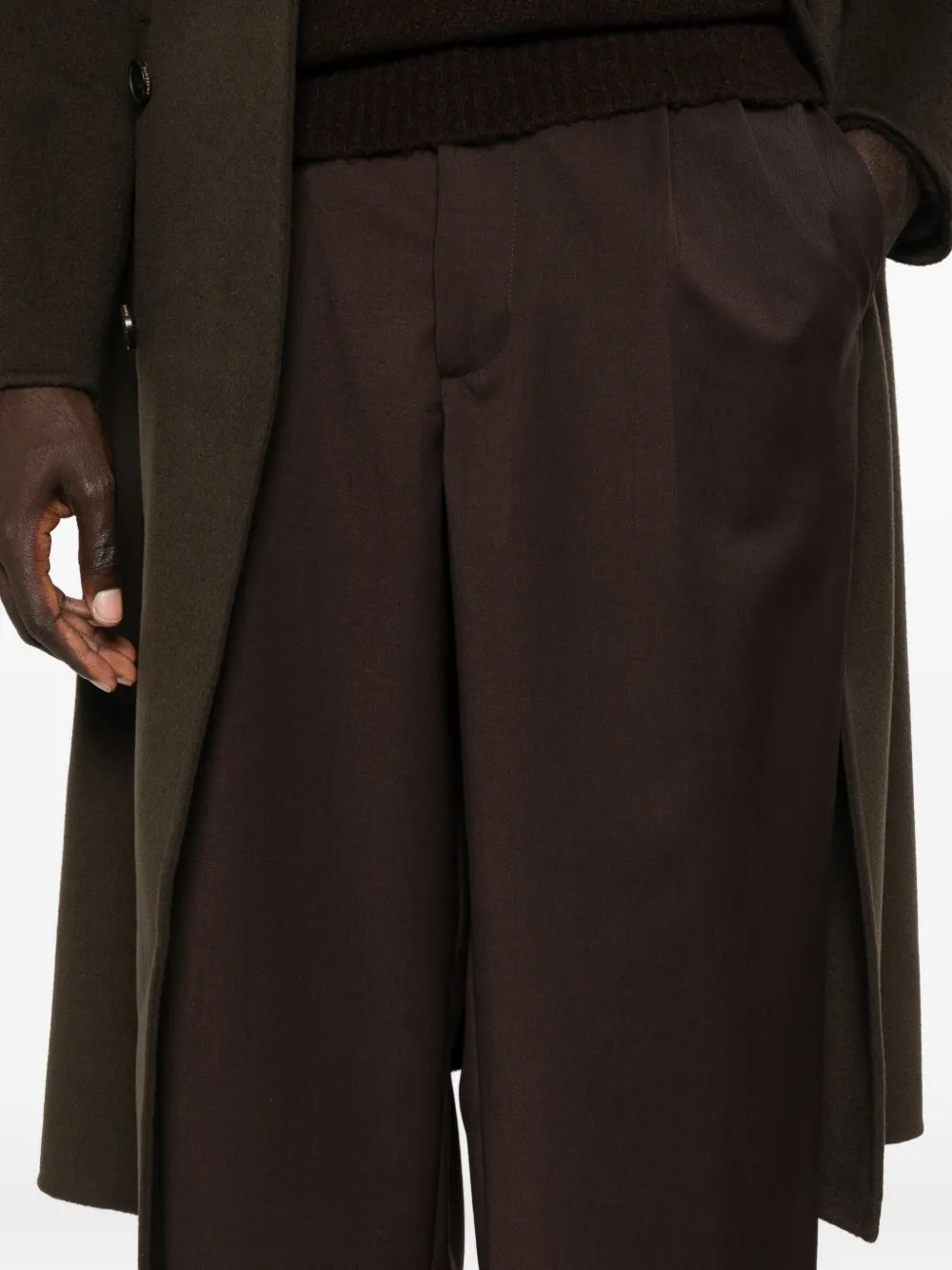 Коричневый детали со складками шлевки для пояса боковые карманы задние прорезные карманы скрытая застежка спереди