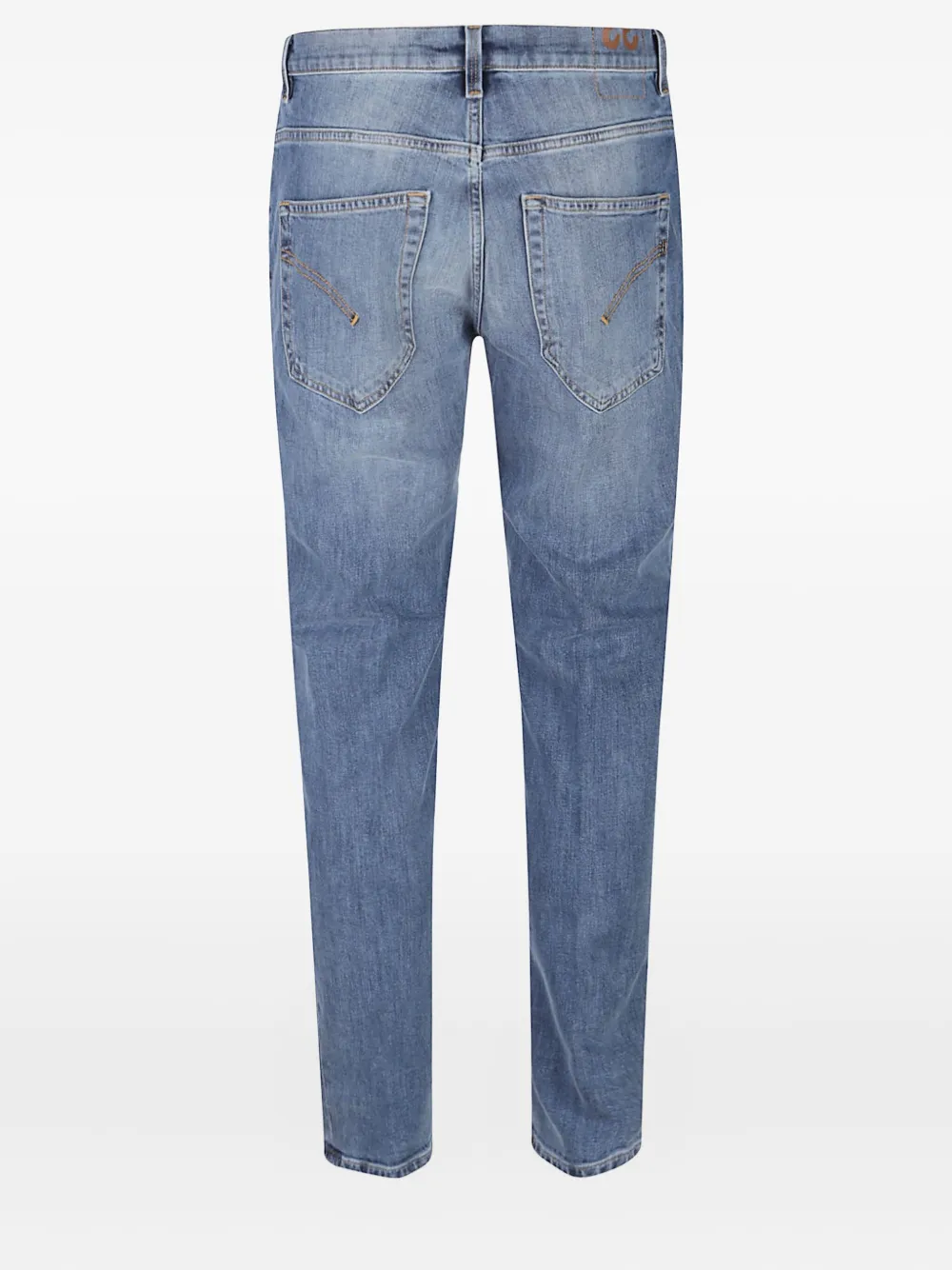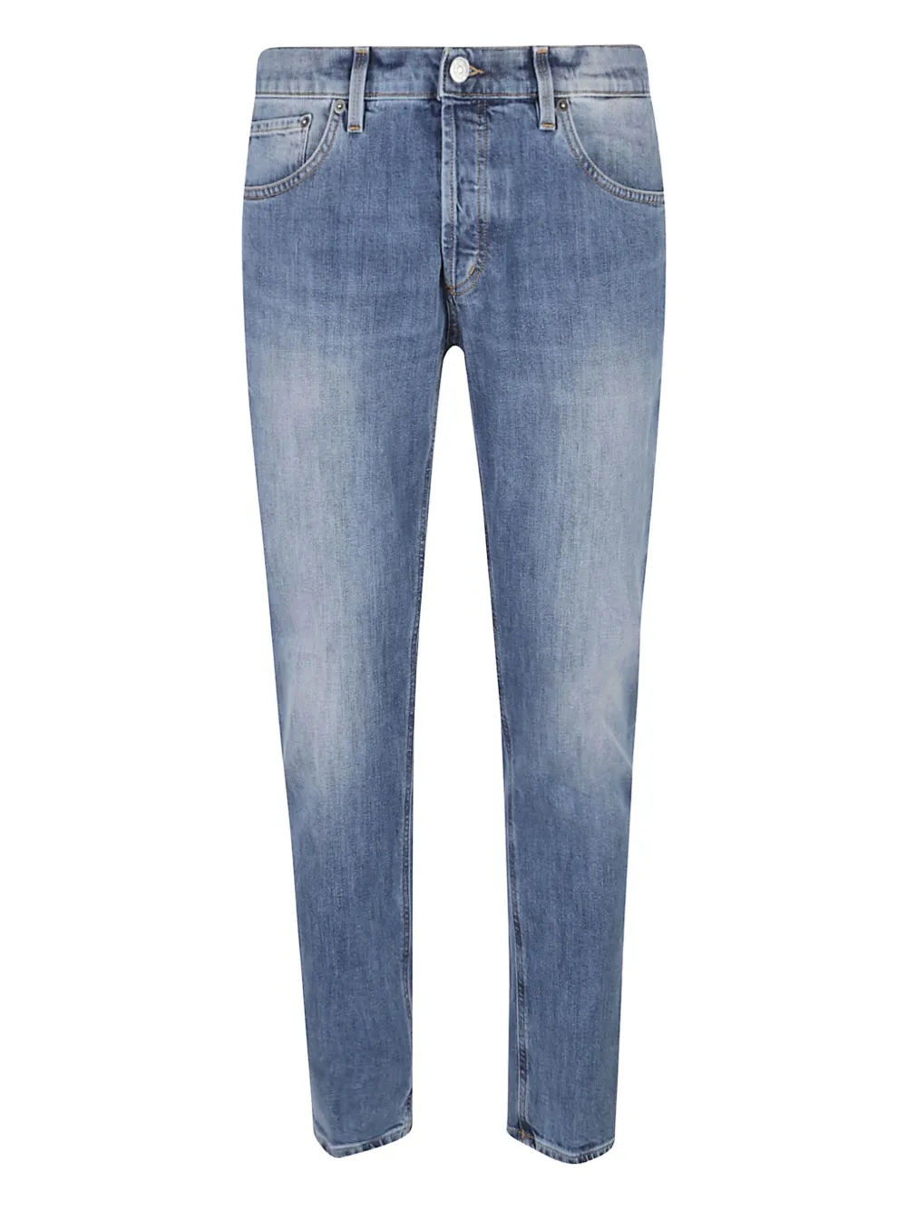 Синий выцветший эффект, пятикарманный дизайн, застежка на пуговицу и потайная ширинка, шлевки для ремня