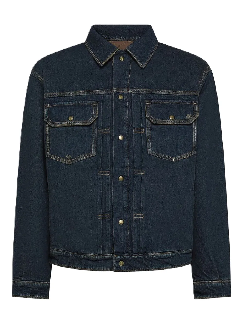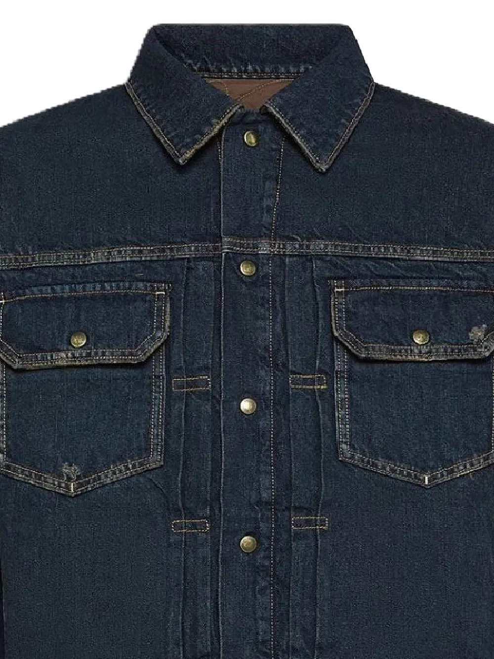 Синий цвет, нагрудные карманы, застежка на пуговицы, отложной воротник, длинные рукава, прострочка