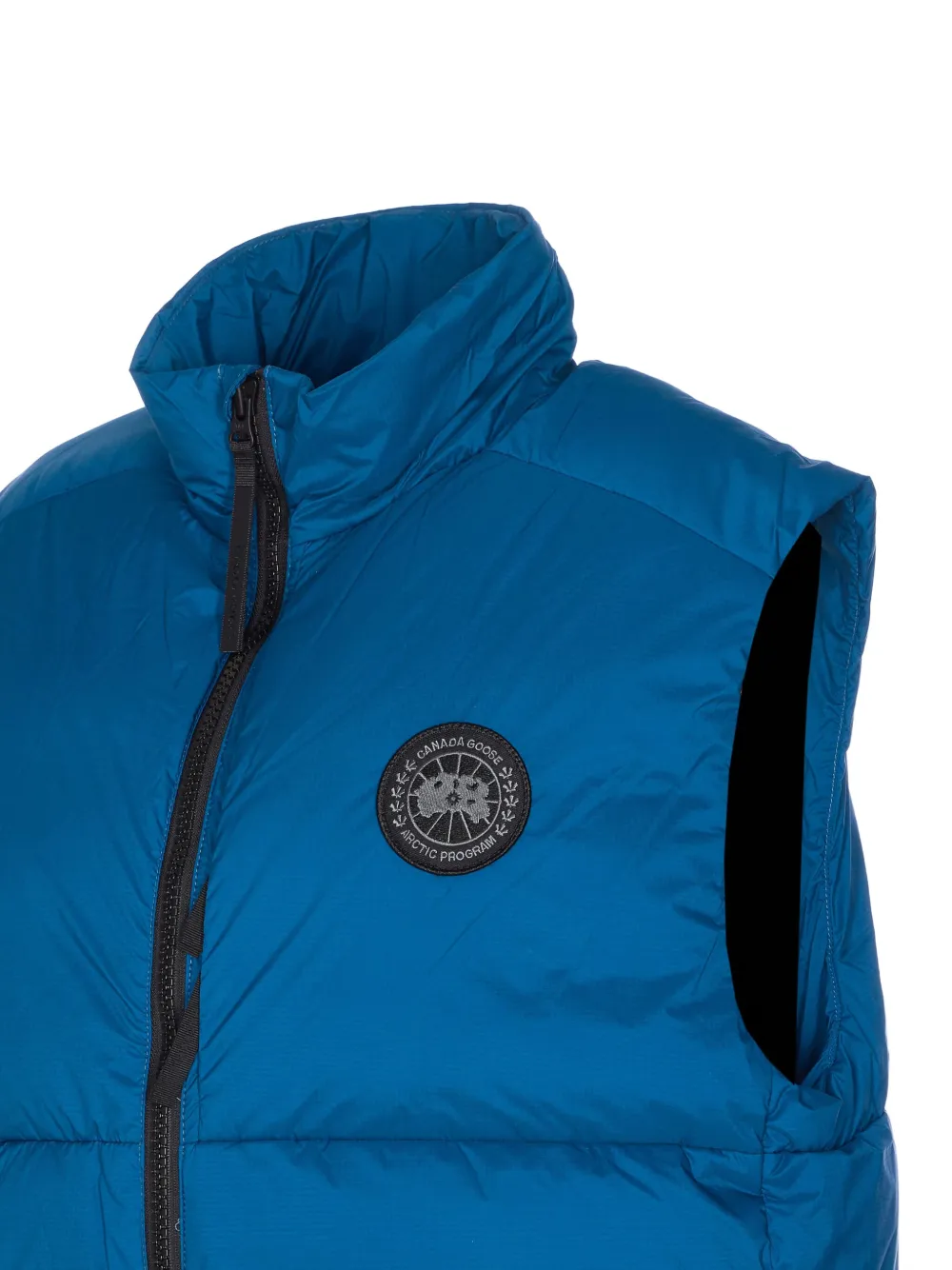 Синий застежка-молния спереди высокий воротник нашивка с логотипом на груди без рукавов
