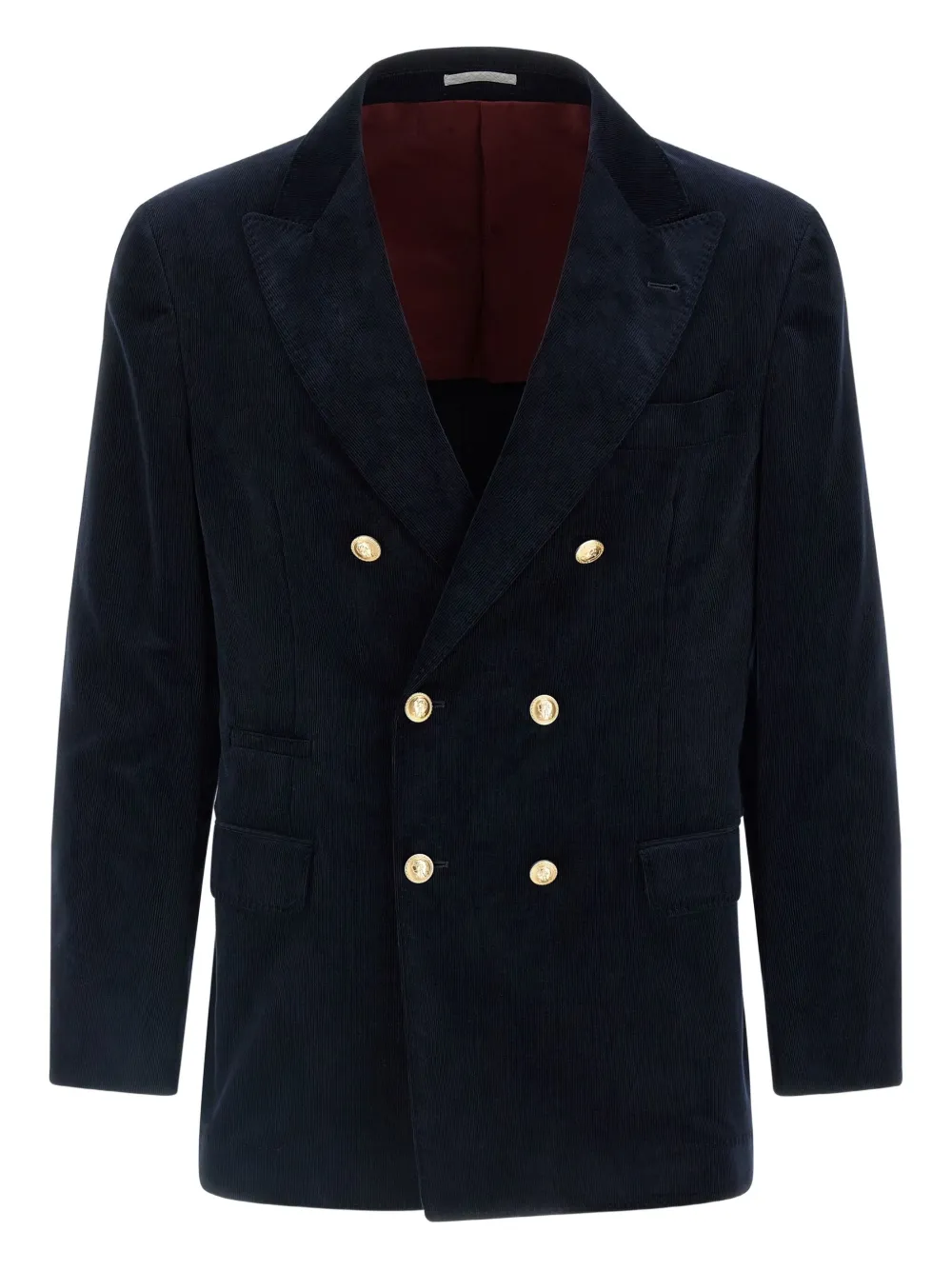 Вельветовый пиджак на пуговицах Brunello Cucinelli, синий