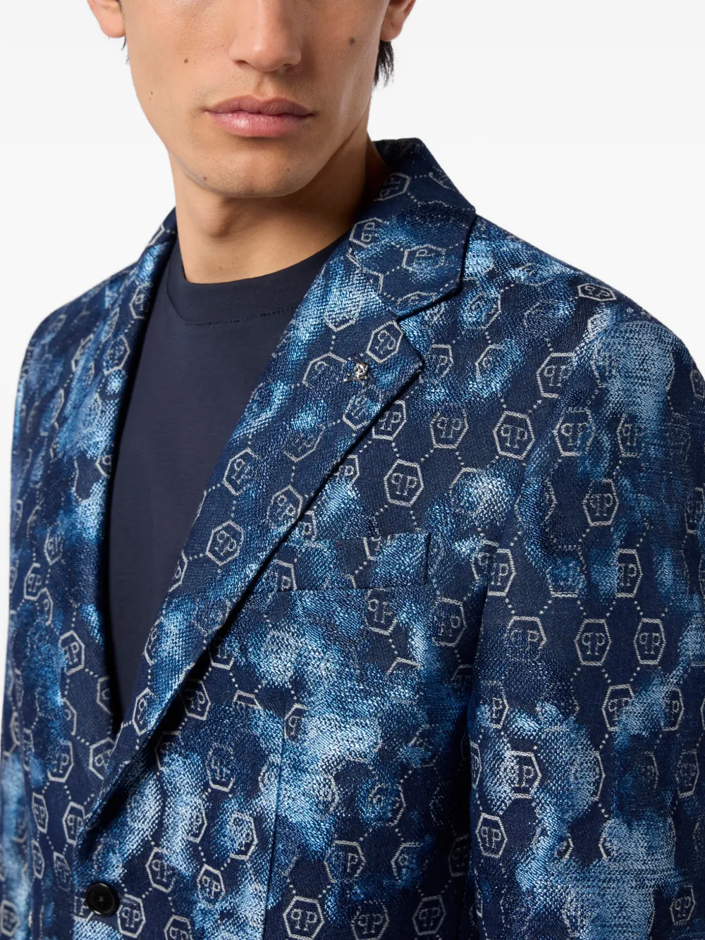 Пиджак с жаккардовым монограммным узором Philipp Plein, синий