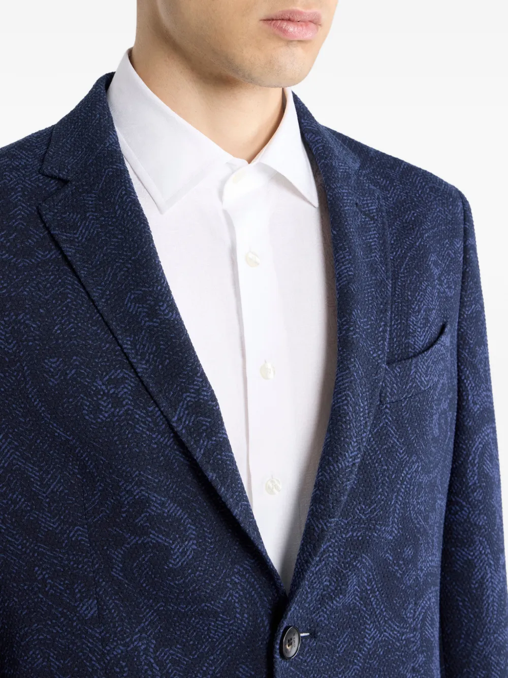 Темно-синий однобортный пиджак с рисунком "пейсли", накладными карманами и застежкой на пуговицы