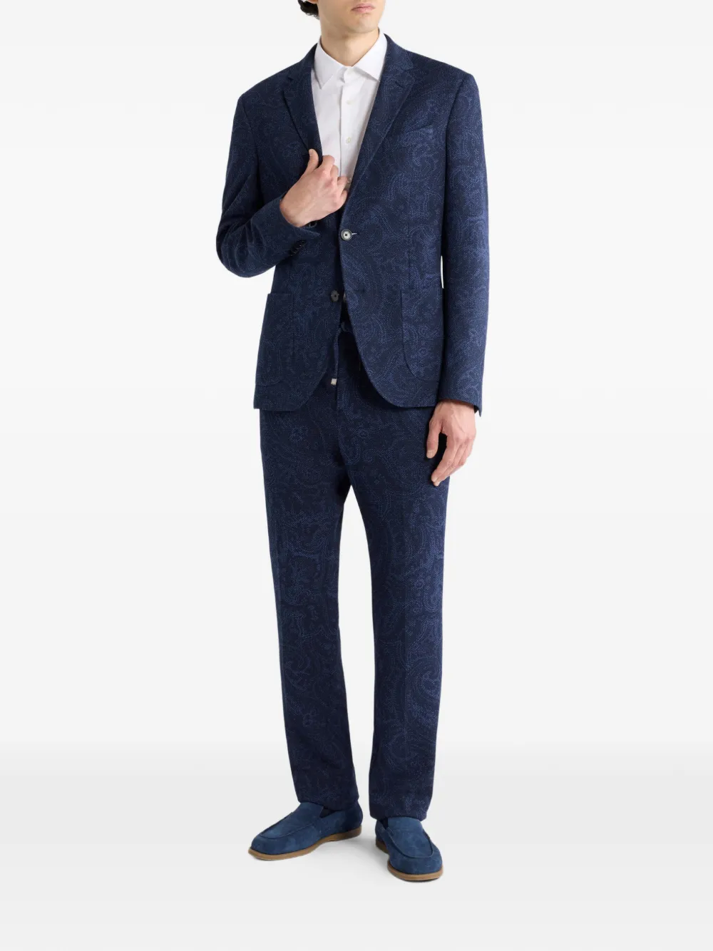 Однобортный пиджак с узором "пейсли" Etro, синий