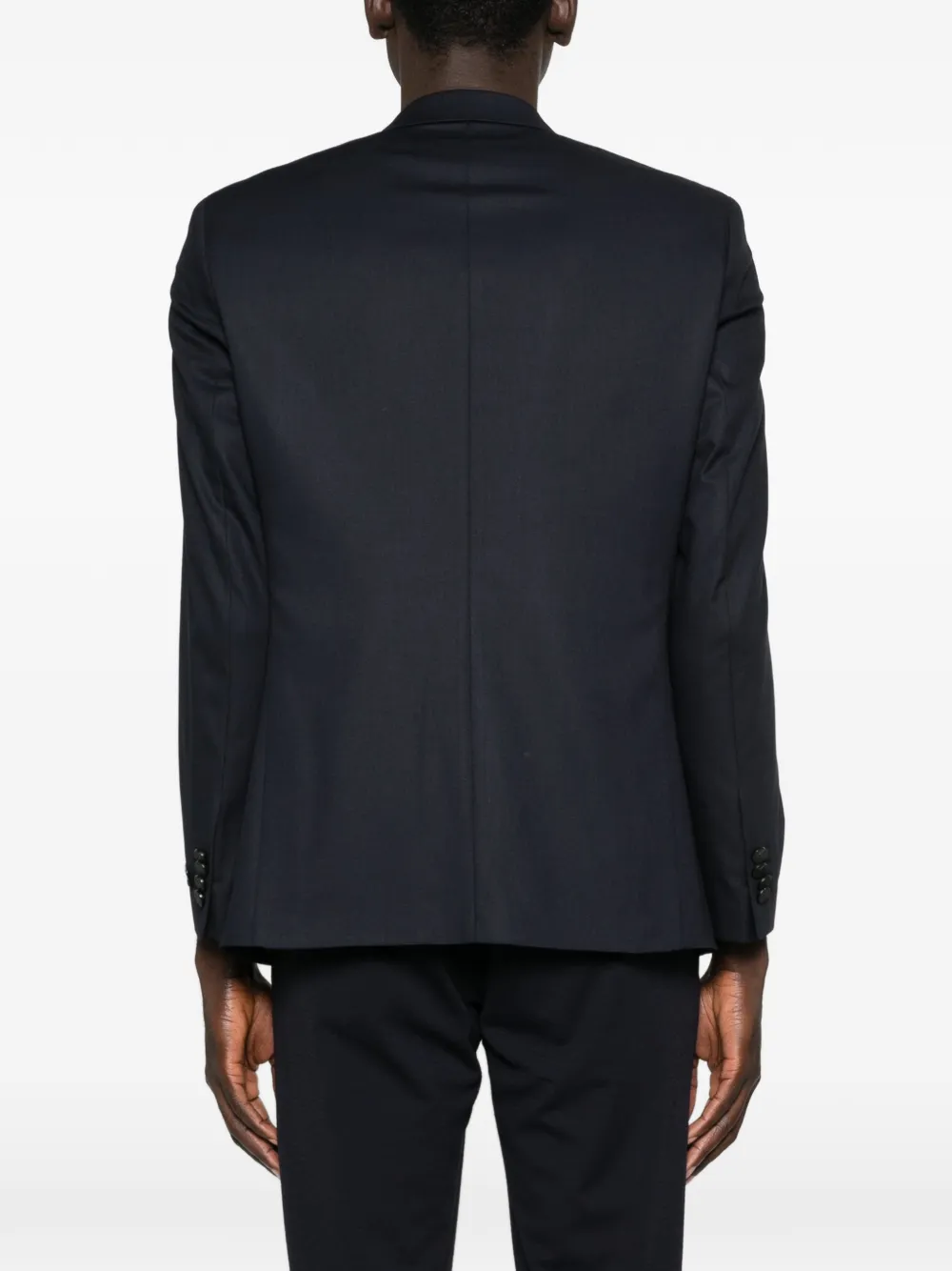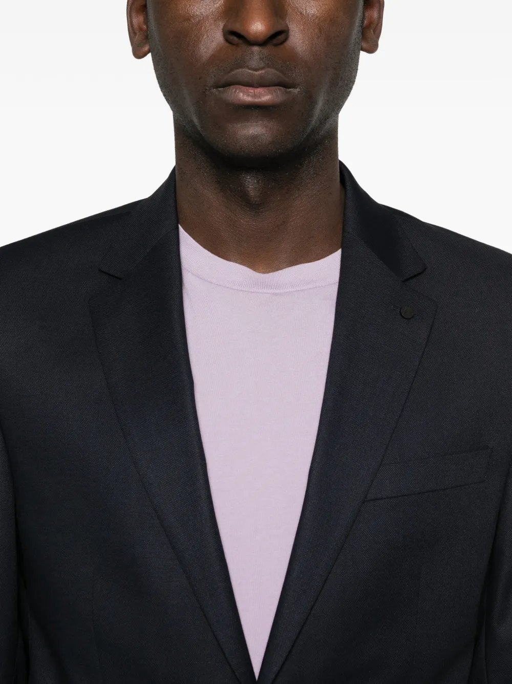 Синие лацканы с вырезом, клапанные карманы, застежка на две пуговицы