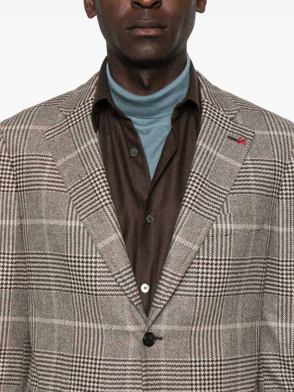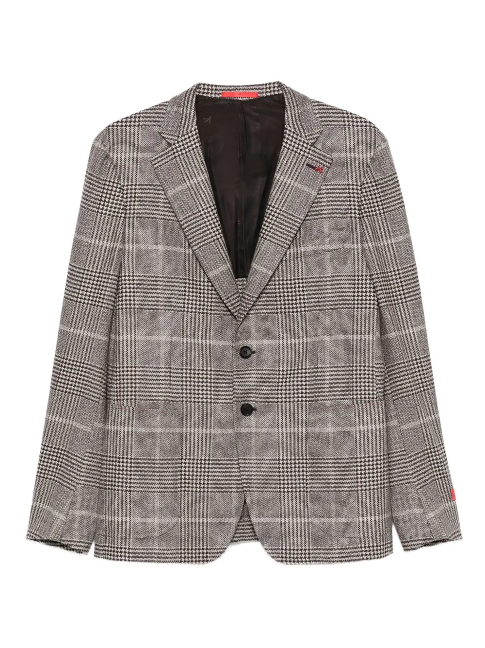 Клетчатый пиджак на пуговицах Isaia, серый 230 427₽