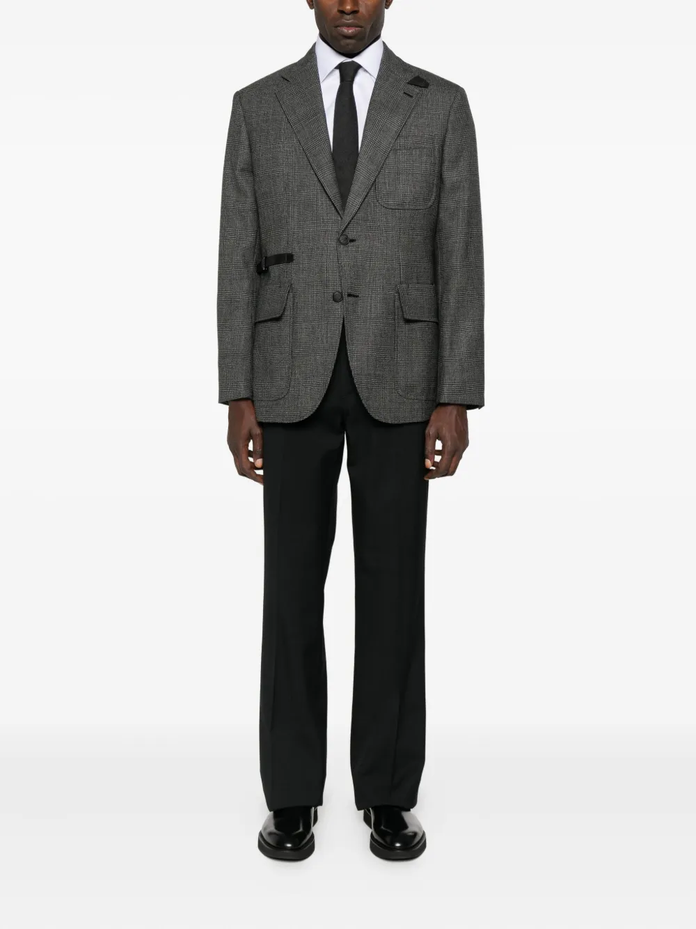 Серый клетчатый узор деталь с поясом застежка на пуговицы спереди кожаный пояс
