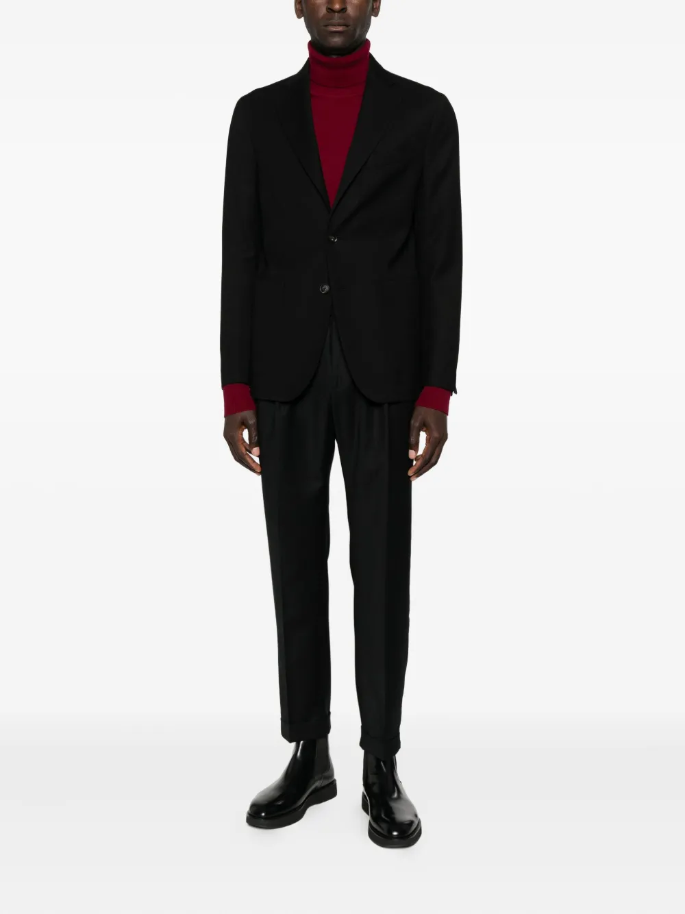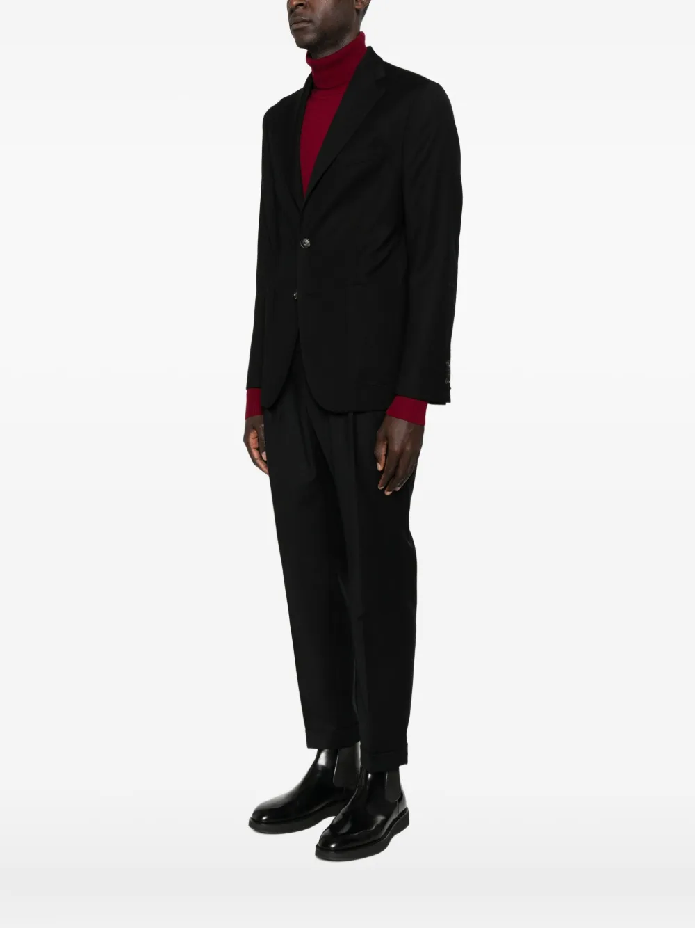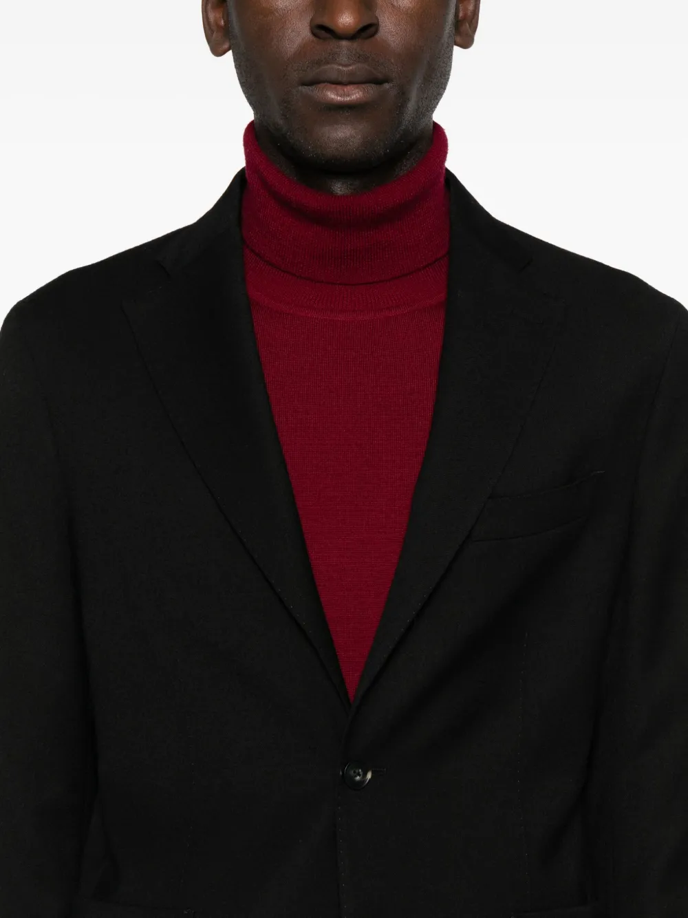 Черный шерсть застежка на две пуговицы накладные карманы спереди лацканы с вырезом